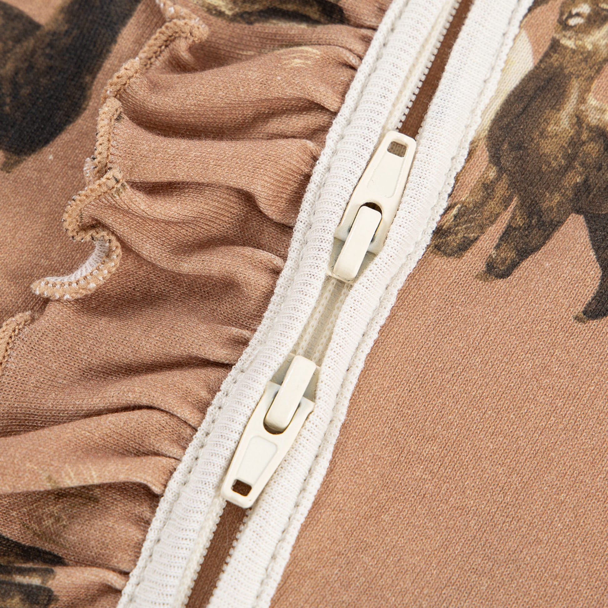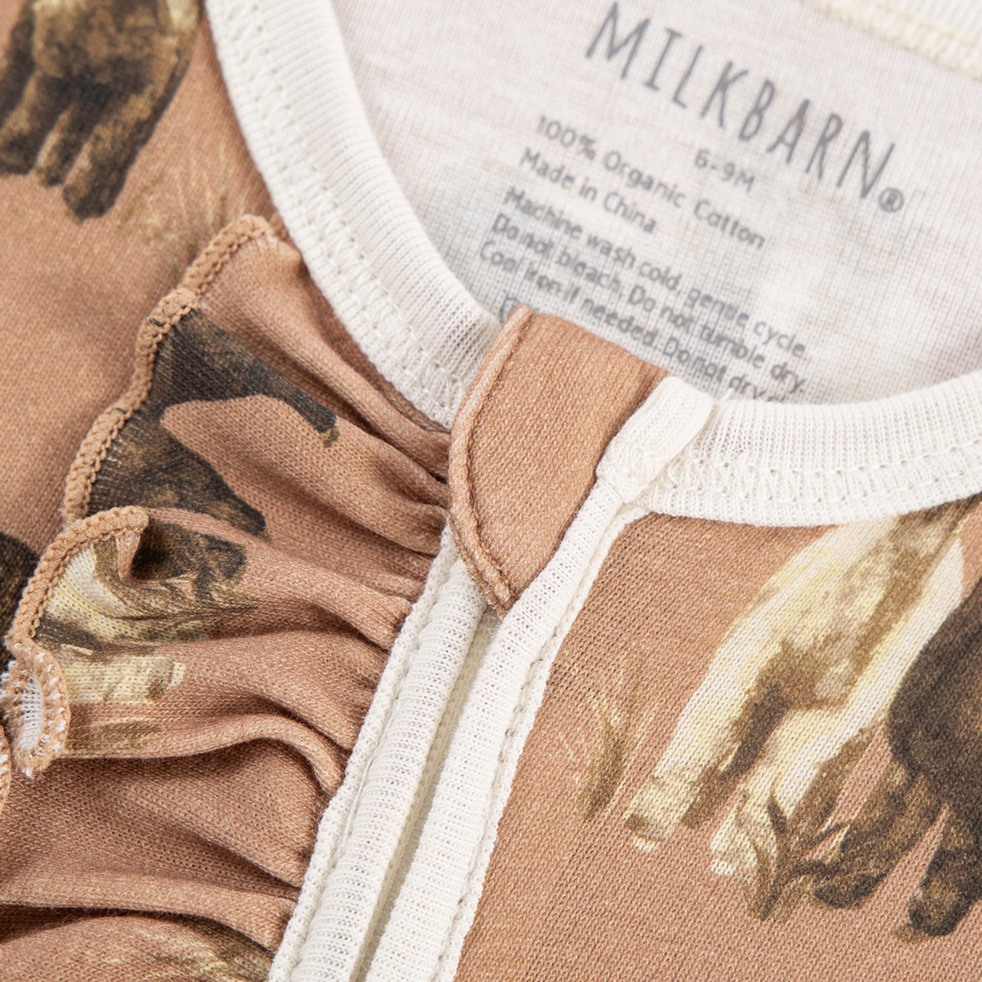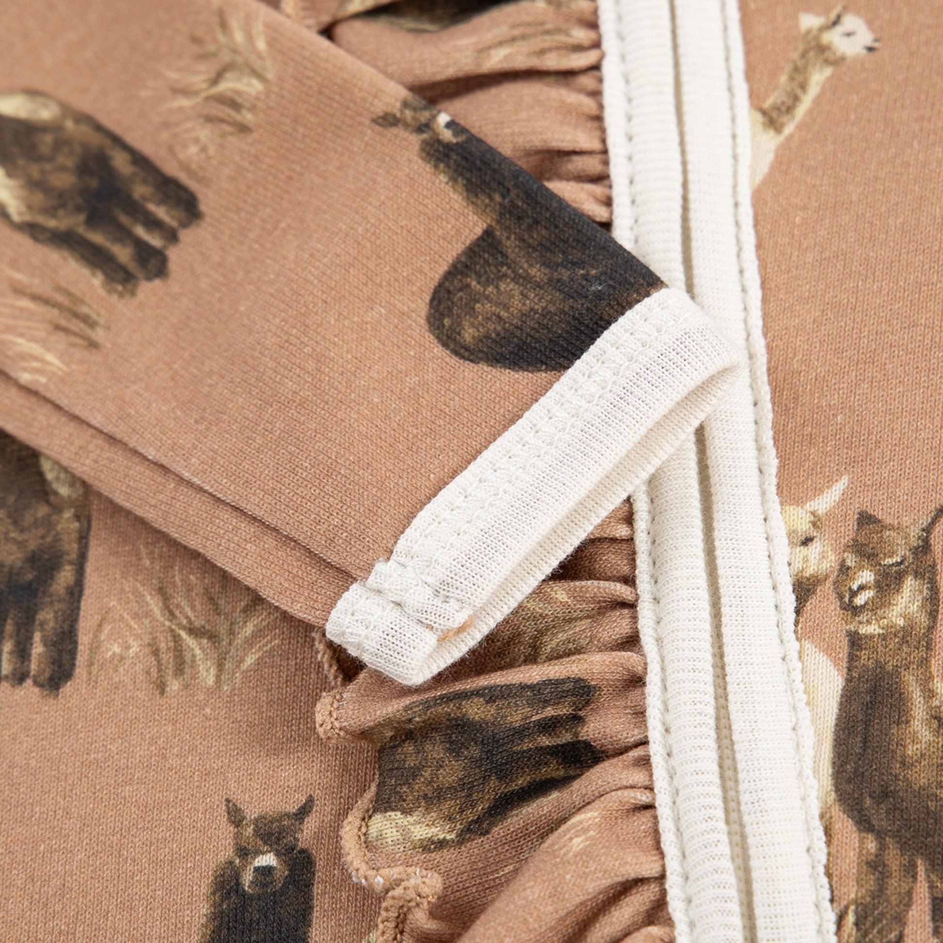 I zip, you zip, we all zip! Whether zipping from the top-down, bottom-up, or somewhere in between, we made changing and dressing just a wee bit easier with our baby Alpaca Organic Cotton Ruffle Zipper Footed Romper. A subtle, ruffle-edged asymmetrical seam and three cascading, full-width rear ruffles add a little extra fun. With dual, two-way zippers and a closed-foot detail, this timeless classic blends design with functionality while wrapping your little ones in gentle comfort.