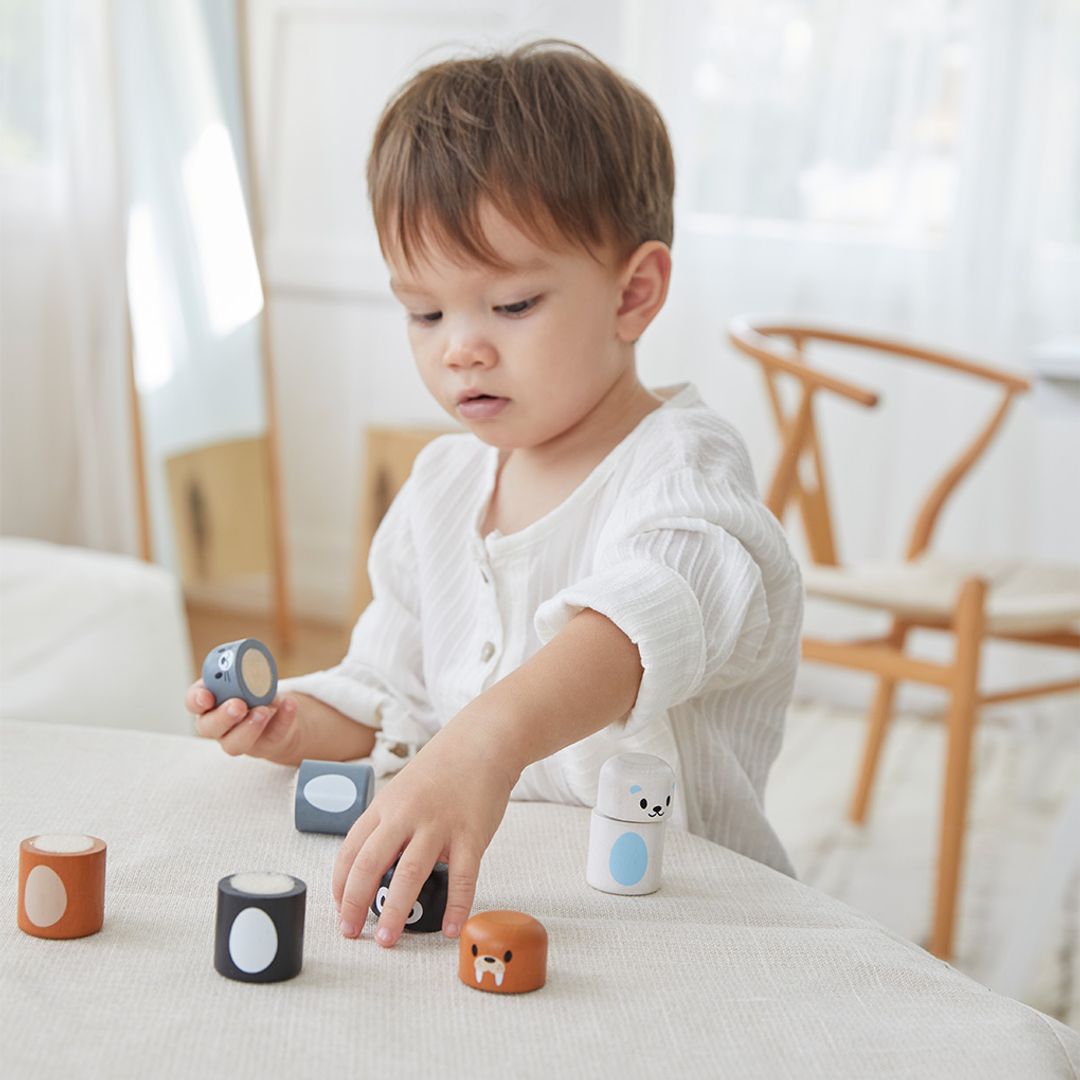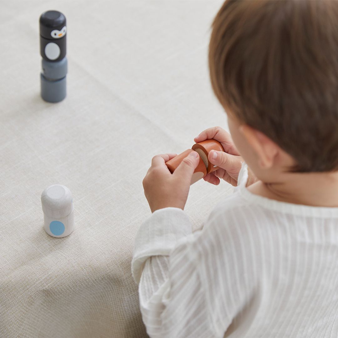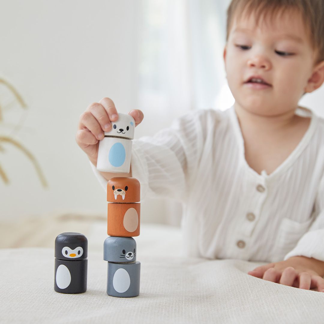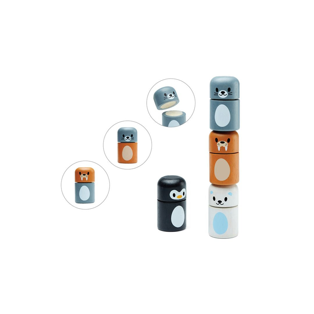 The PlanToy Arctic Animal Matching blocks are fun figures that you can stack, mix, and match to make your favorite winter animals. The piece connect with hook and loop tape. Little ones can mix and match the blocks of these arctic animals. The set includes a penguin, seal, walrus and fox. For advanced play, see how high you can stack all of the blocks.