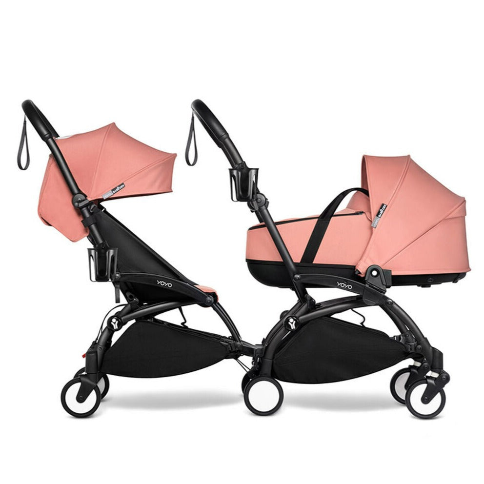 The cup holder has been specially designed for the YOYO. Very stable, it has a hook specifically designed to attach to 6 different points on the stroller frame. Keep your drinks close at hand by installing a cup holder for you and one for your baby.