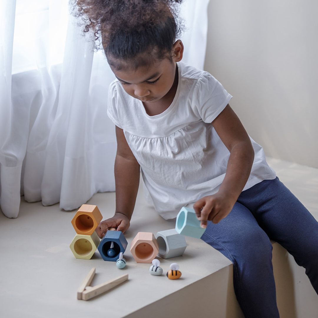 - Bring children a little closer to the outdoors with the PlanToys Beehives. Six bees that vary in color match with a hive for a realistic beehive environment! Teach little ones about bees - their habitat diet way of life purpose etc.
