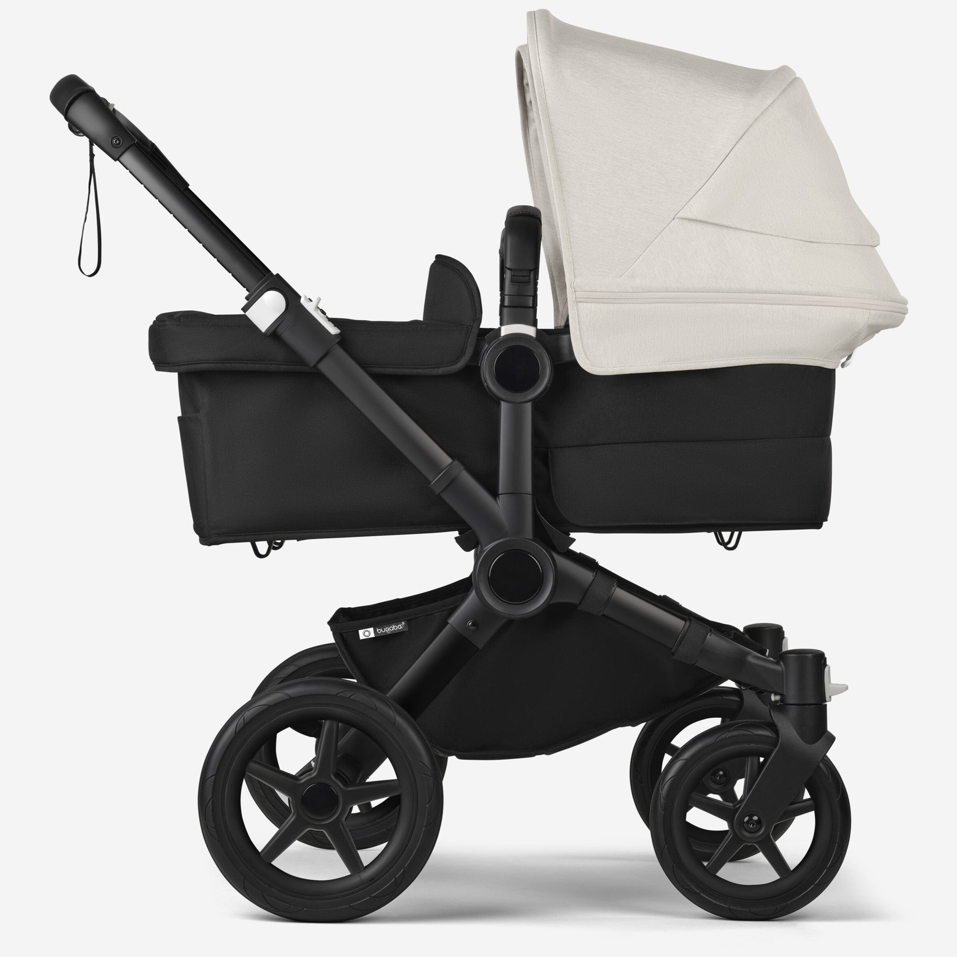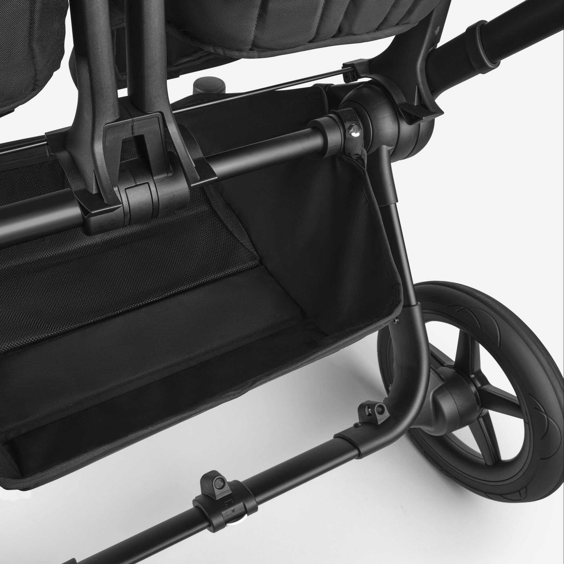 The hardware for your Bugaboo Donkey 5. Comes with a chassis, wheels, wheel caps, and pre-assembled grips.
