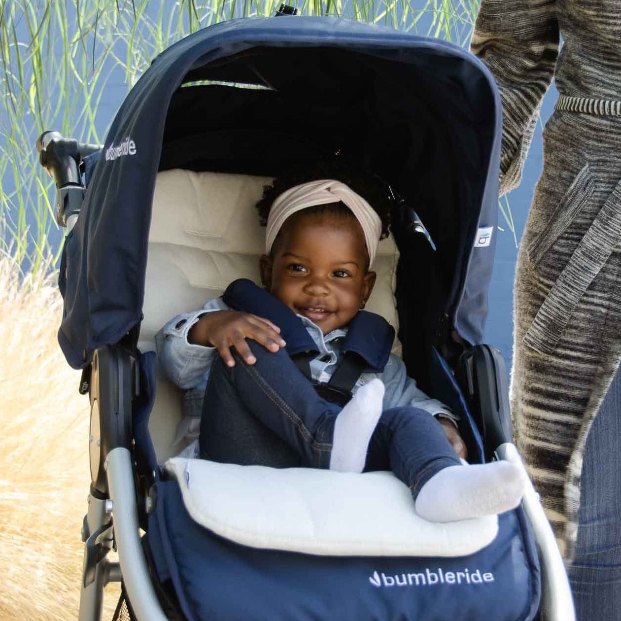 Our 100% Organic Cotton reversible seat liner accessory attaches easily to all Bumbleride strollers. Safe and gentle for little travelers with sensitive skin and an extra layer for added comfort on family adventures. Save time, water, and energy keeping your seat fabric clean. The Bumbleride baby stroller seat liner is easily removable and machine washable on a gentle cycle (air dry). Available in Natural Color only.
