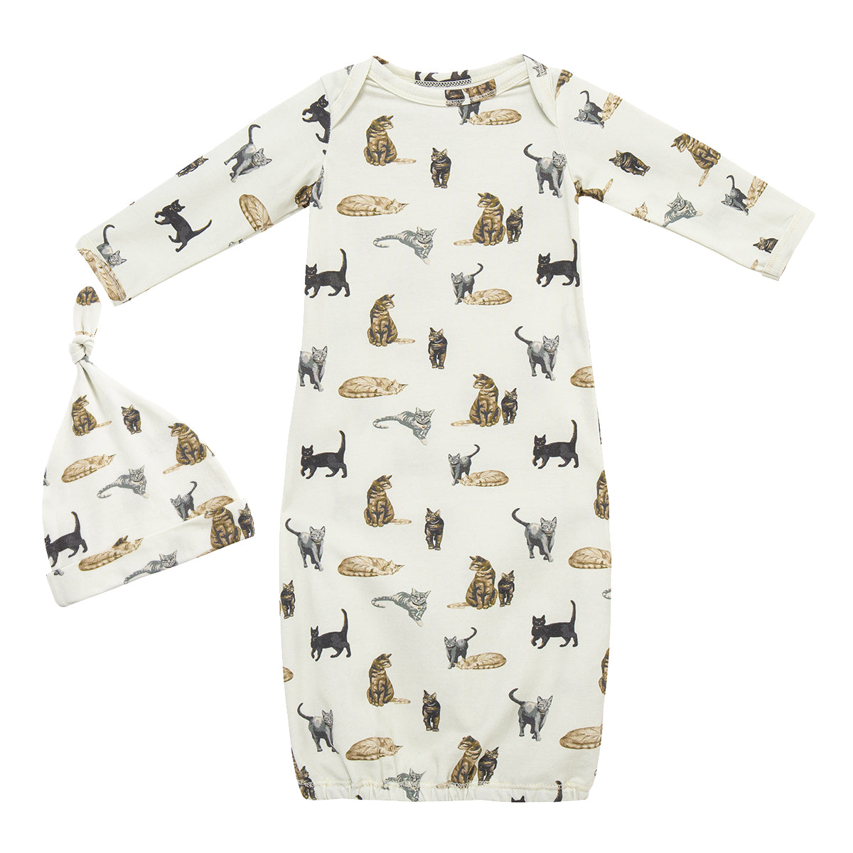 Cat Cotton Stretch Newborn Gown & Hat Set