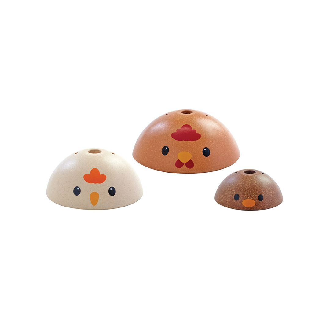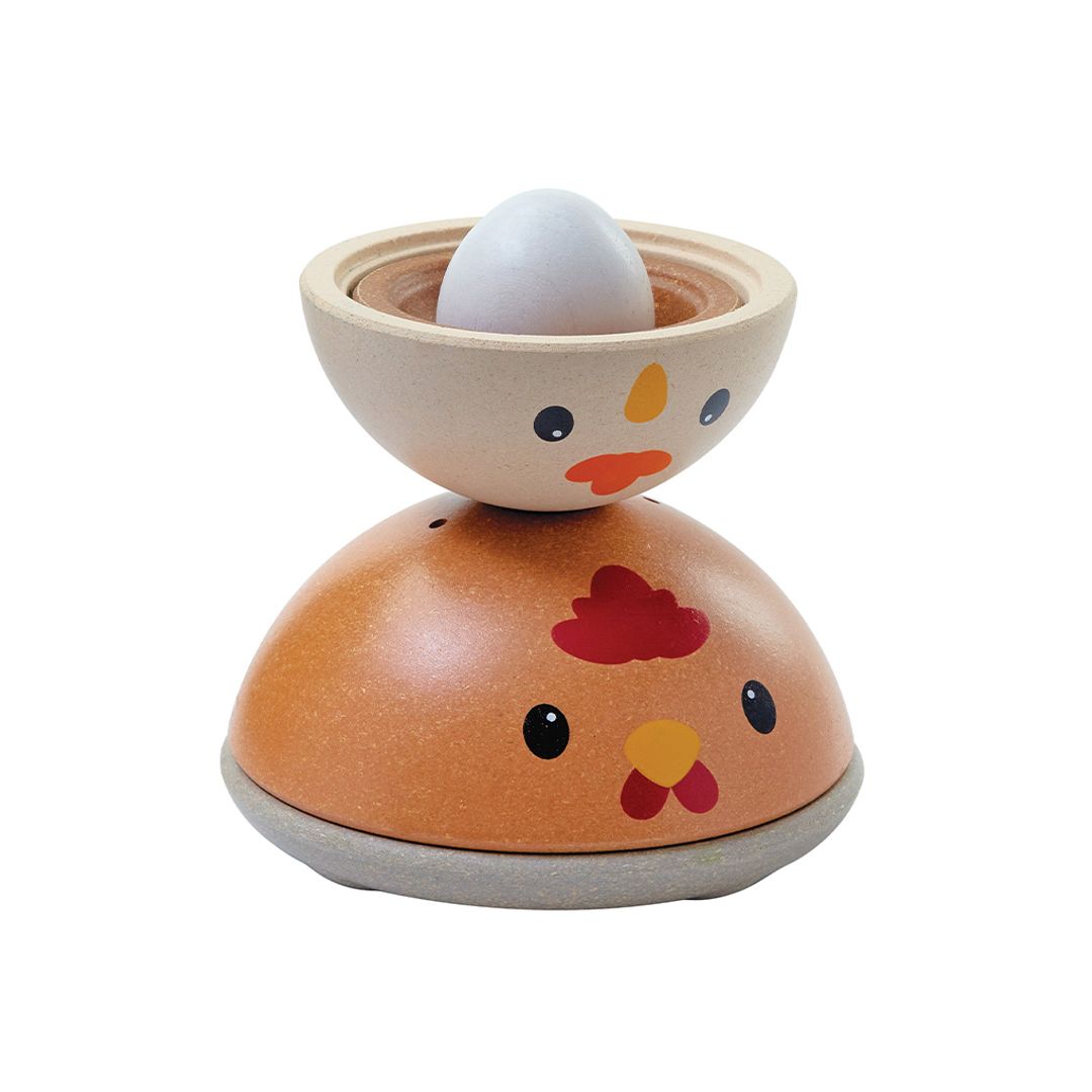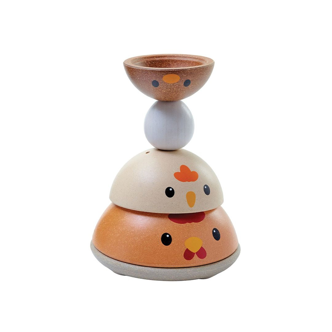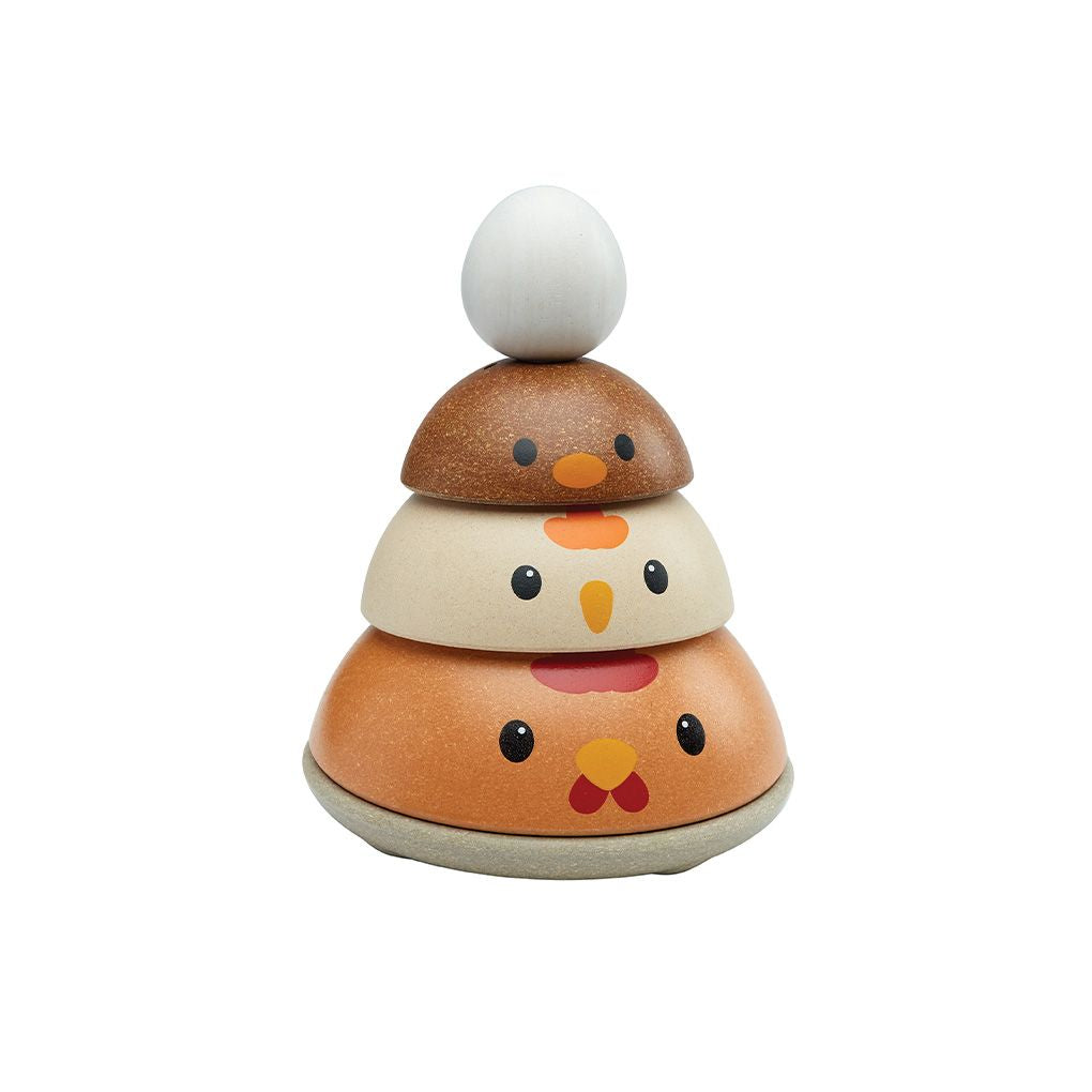 How quickly can you stack the PlanToys Chicken Nesting set? This version comes in the modern rustic colorway. Time yourself and see how advanced your ordering and stacking skills are! Children strengthen fine motor skills, develop logical thinking and problem solving, and explore size/shape recognition through play. Set comes complete with a base for stacking onto and 4 colorful pieces for play. This version is from our Modern Rustic collection. Suitable for children ages 12 months and older. Sustainably made in Thailand using chemical-free rubberwood, non-formaldehyde glue, organic pigments and water-based dyes.