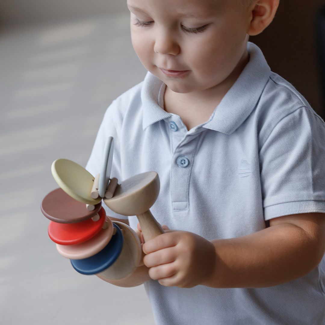 Using an alternating up and down motion with both hands, the toy’s colorful segments will create various click-clack sounds.