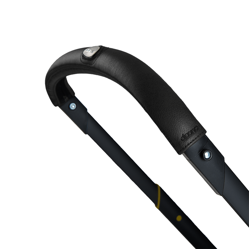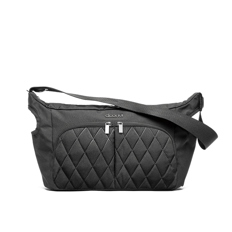 The Doona Midnight edition features a diamond shape seat cover, black anodized aluminum, and faux-leather touches throughout. This edition includes an exclusive complimentary Doona Midnight Essentials Bag and a luxurious black faux-leather Handlebar Cover.