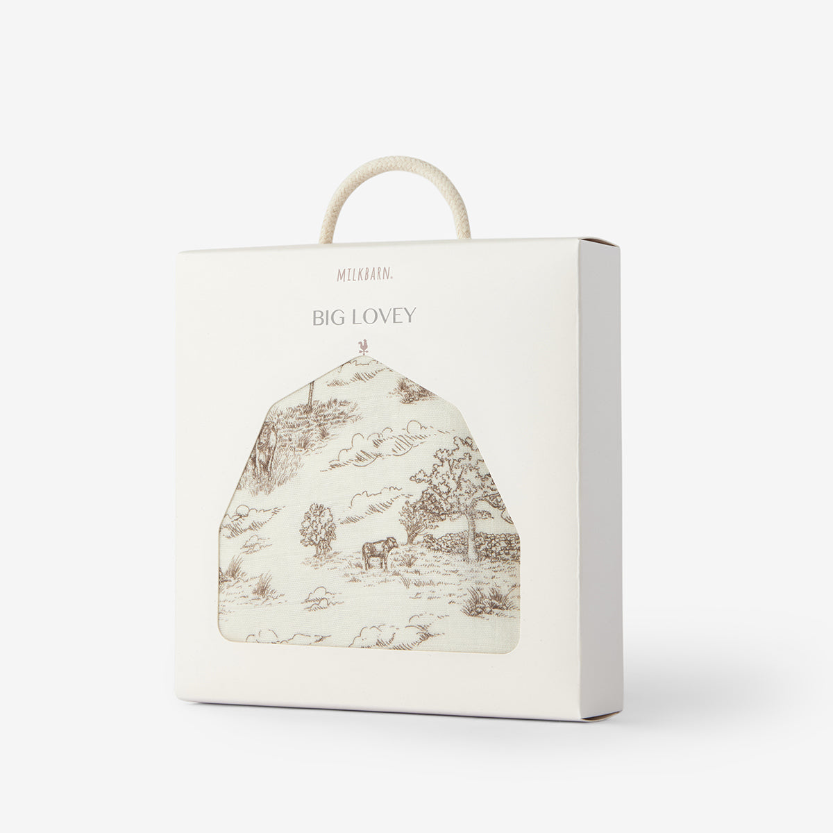 The ultimate in comfort, our generously sized Big Lovey Muslin Blanket in the Country Toile print allows for extra snuggles and cuddles.