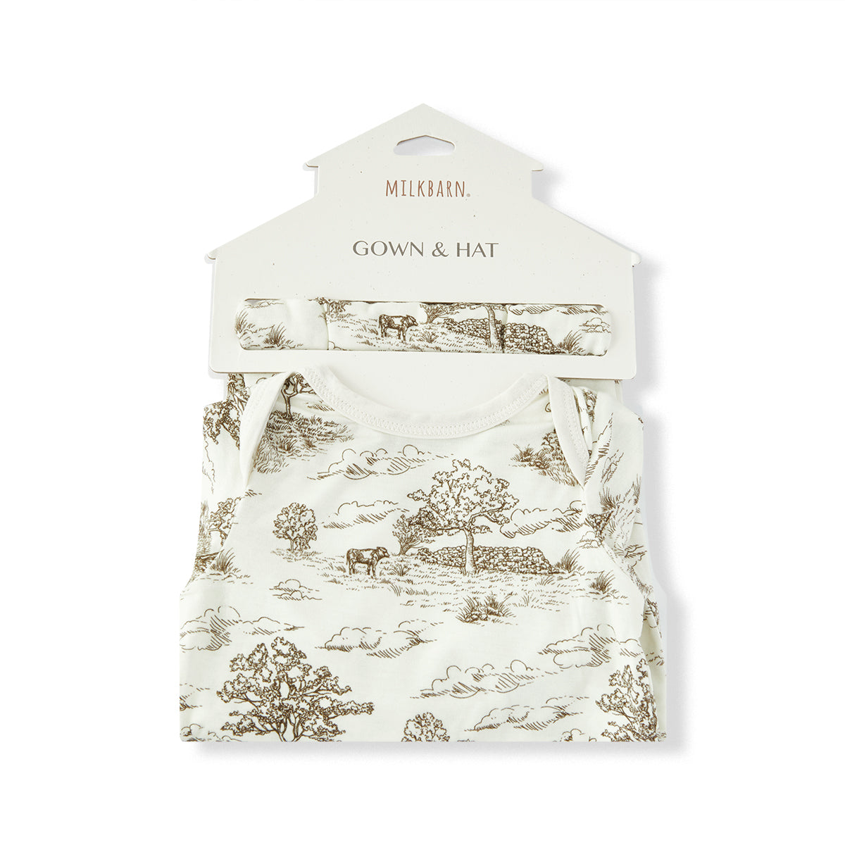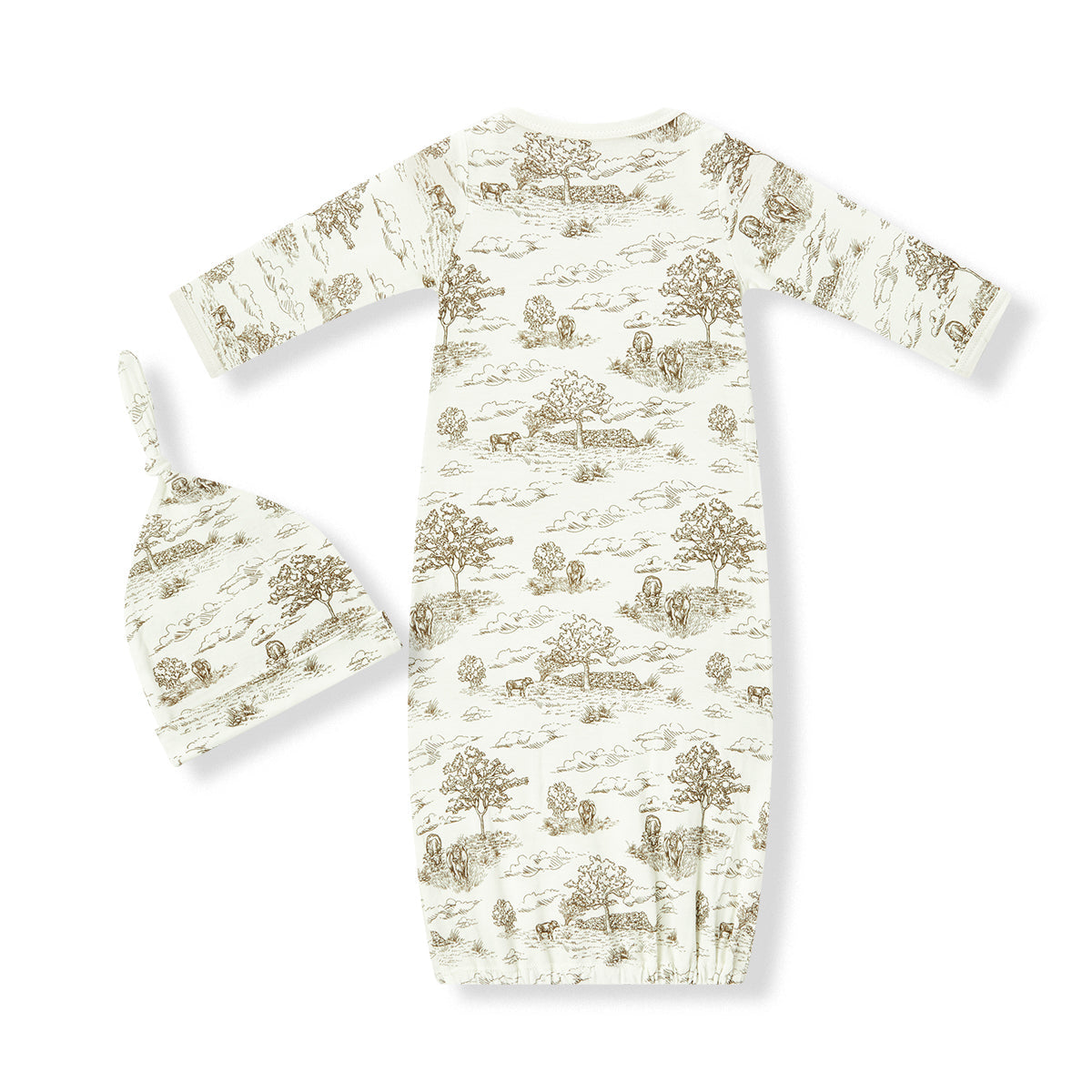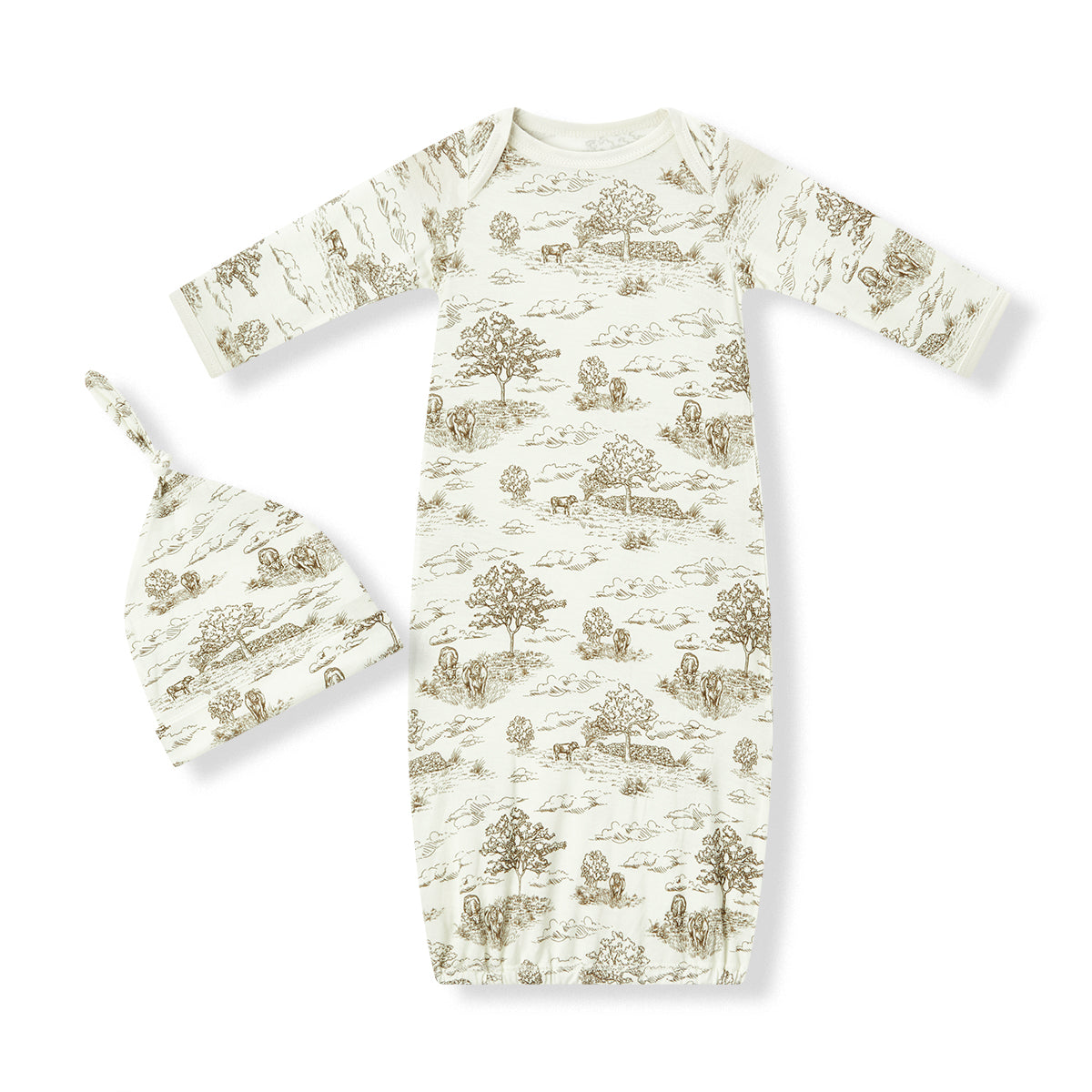Country Toile Luxe Stretch Newborn Gown & Hat Set