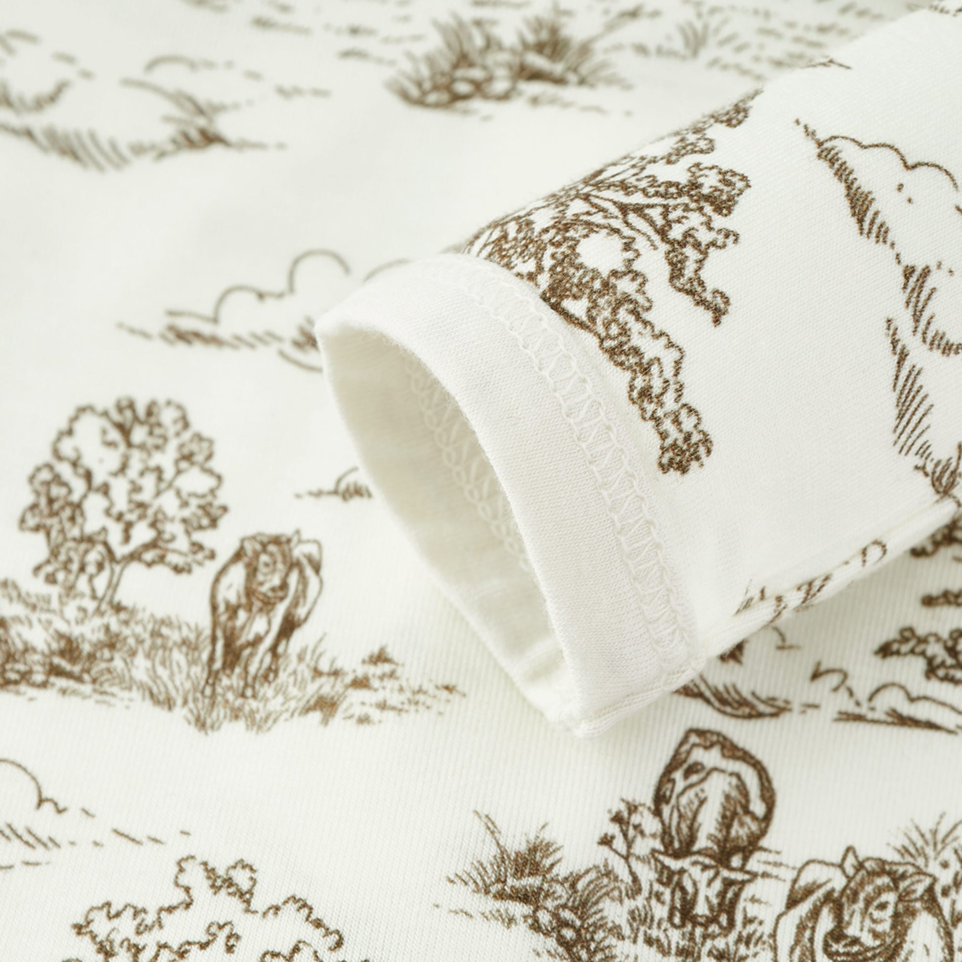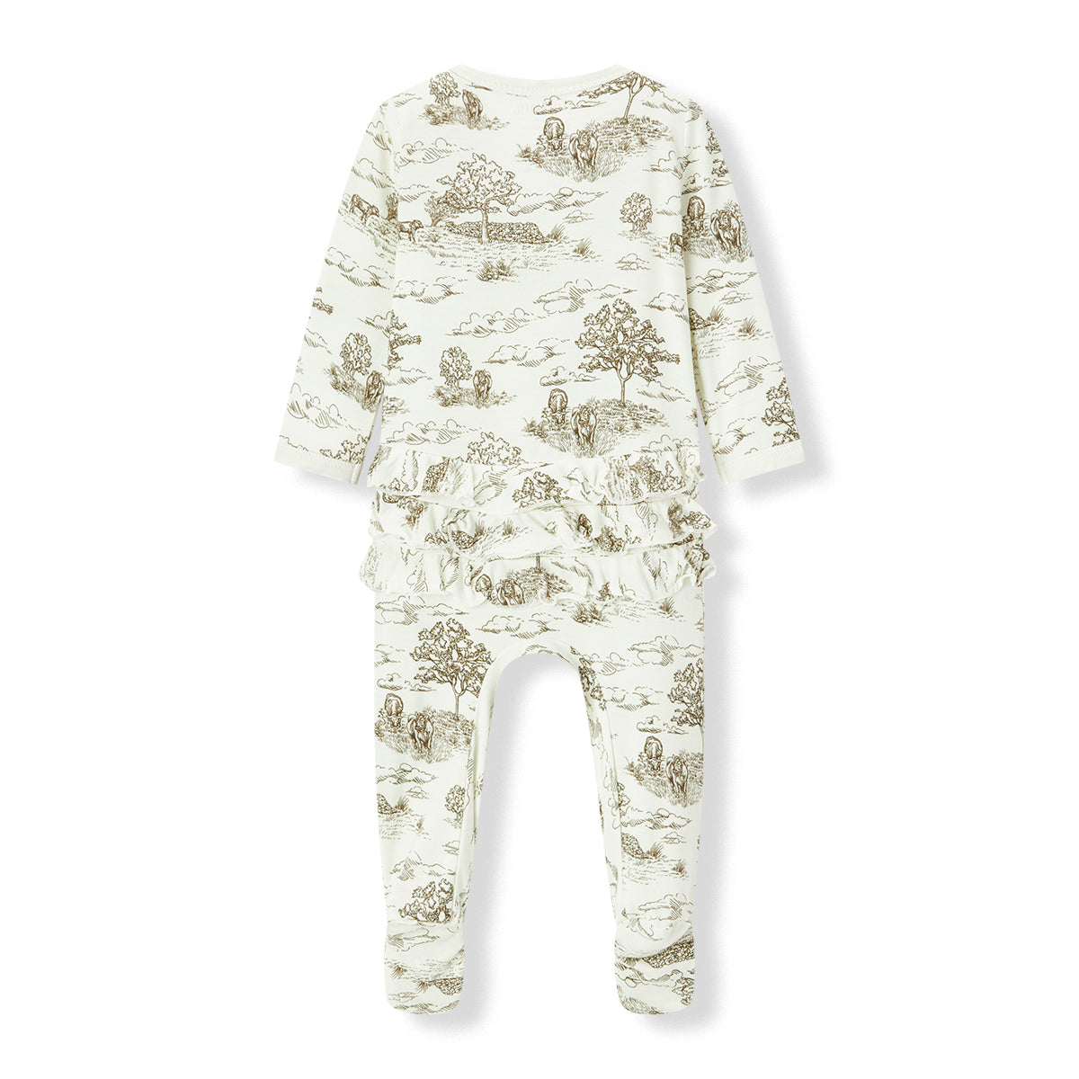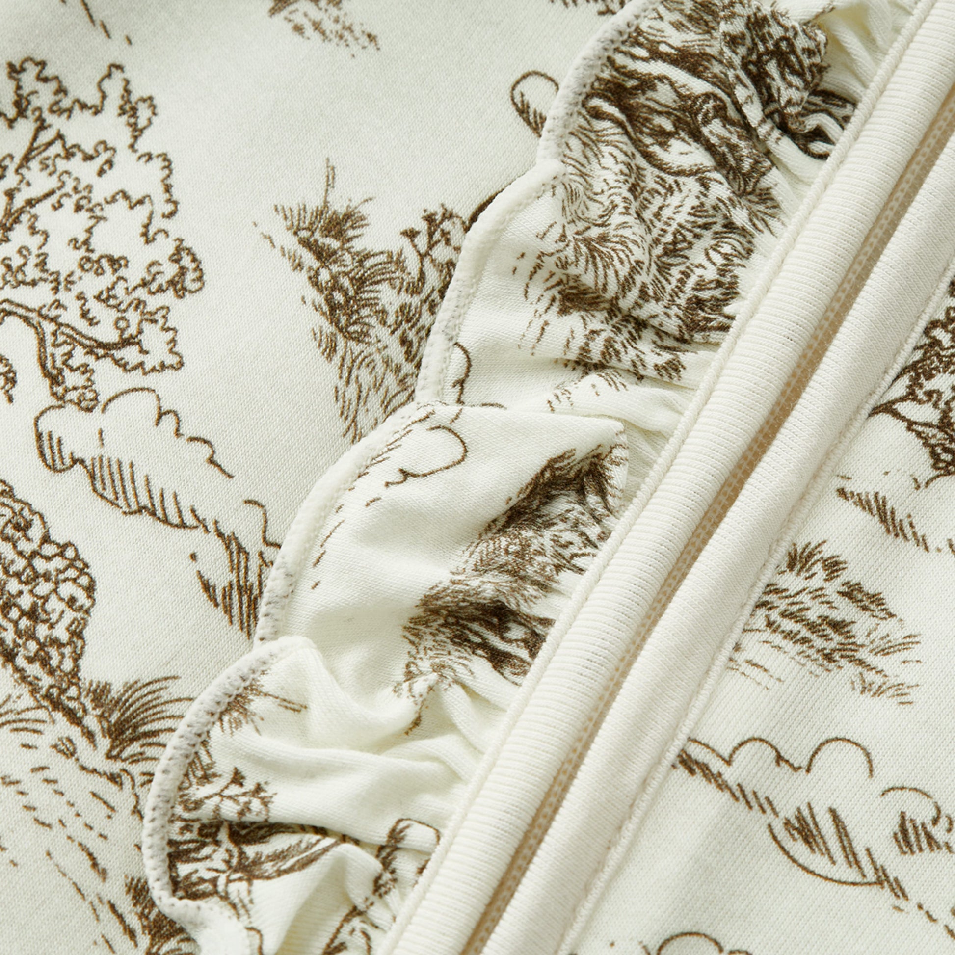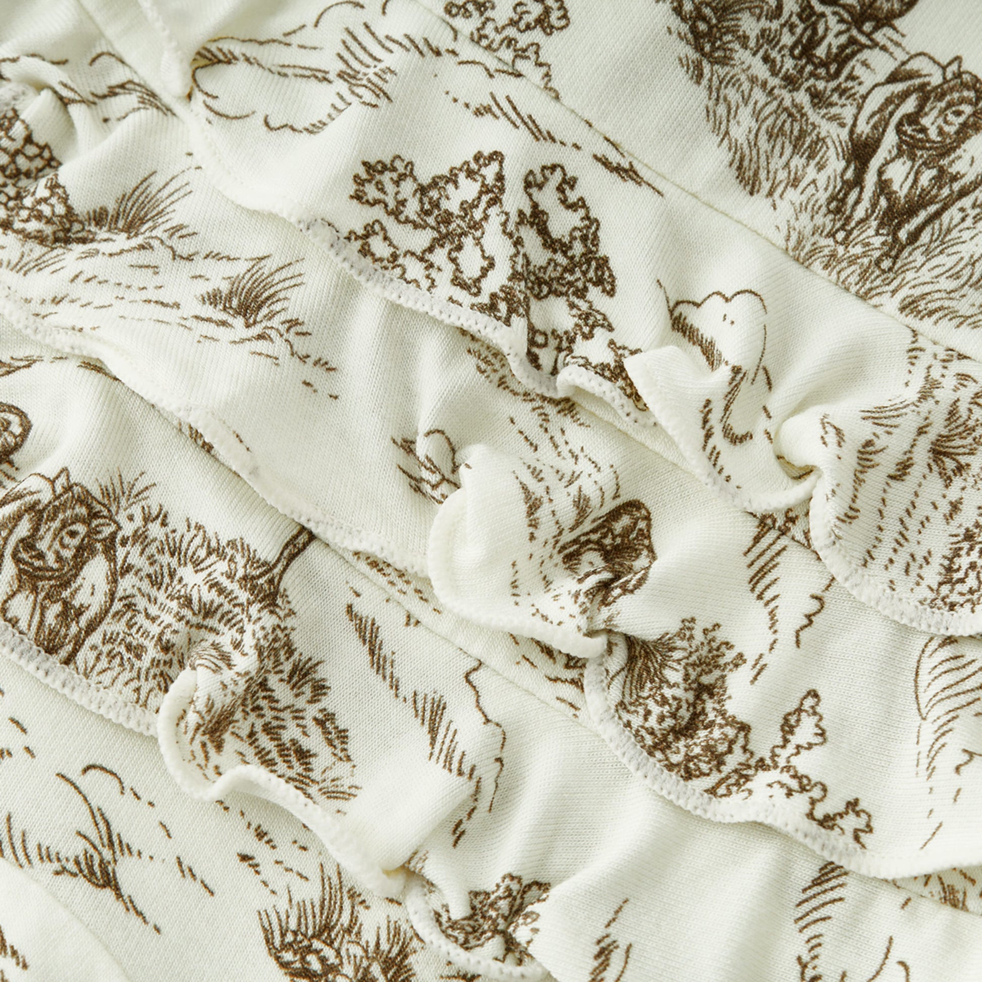 Country Toile Luxe Stretch Ruffle Footed Romper