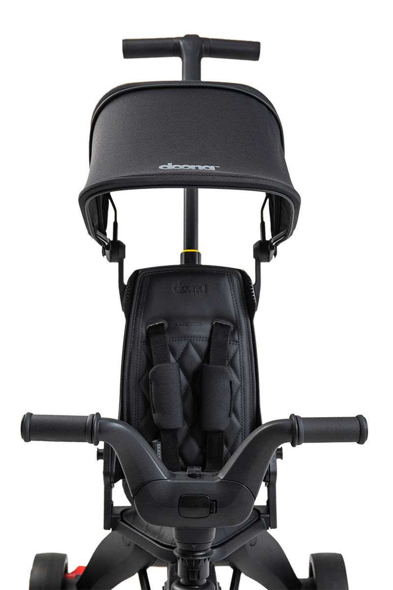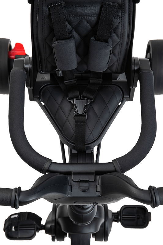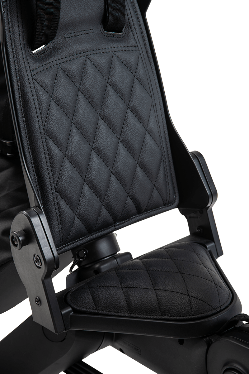 Liki Midnight is the way to ride in ultimate style. With a strikingly bold all-black design, this edition includes elevated black faux-leather handlebars, a black anodized aluminum parent handle, and an elegant faux-leather diamond-stitch backrest and seat cover.