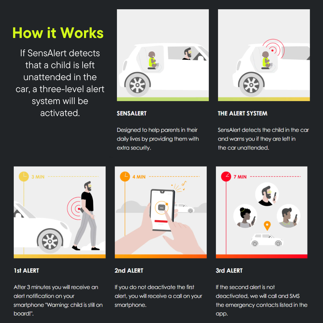 This bundle features SensAlert, the only child car seat alert solution with three alert levels, utilizing Bluetooth technology to detect if your child is left unattended in the car. The intelligent cloud-based system sends messages and calls, ensuring reliable communication that does not depend on your phone’s signal or status, keeping your child safe.