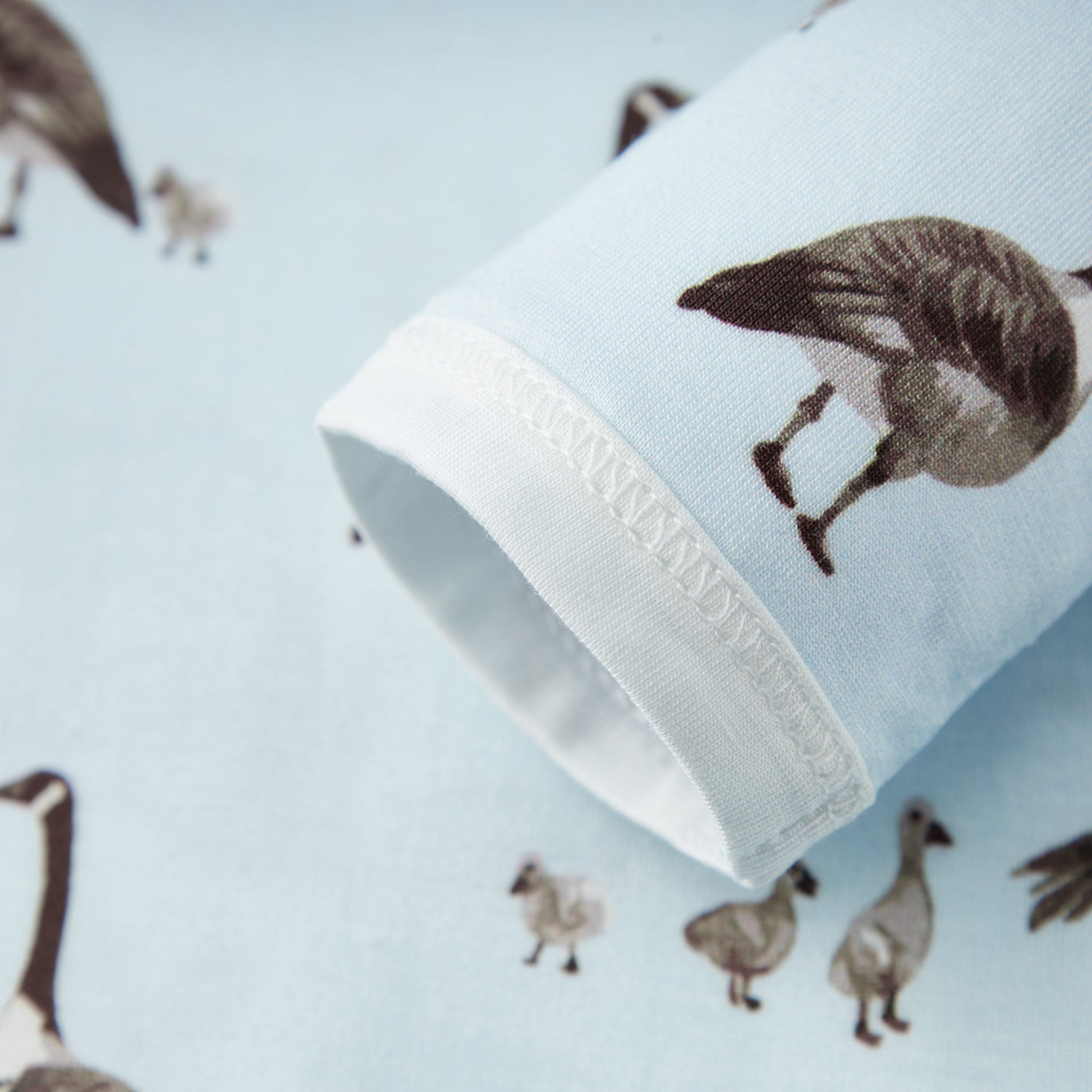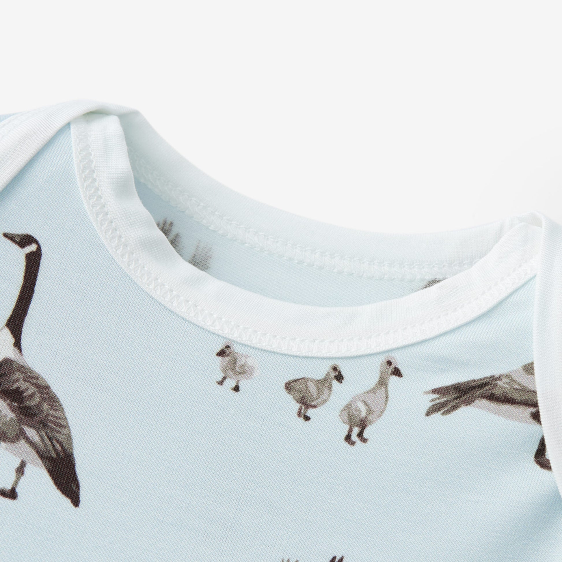 From that first emotional trip home to the initial months of bonding in the rocking chair, we highlight the beauty of your bundle of joy in our cozy, newborn luxe stretch Gown & Hat Set in the Goose print. The coordinating knotted hat adds warmth, the fold-over hand covers provide added protection, and the soft elastic bottom and envelope neckline allow for ease of changing. Pair our Gown & Hat set with our coordinating Swaddle blanket or Burp Cloths for that perfect ensemble.