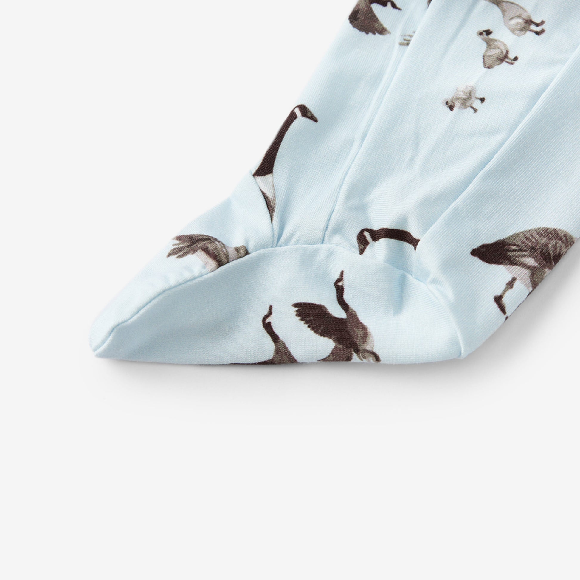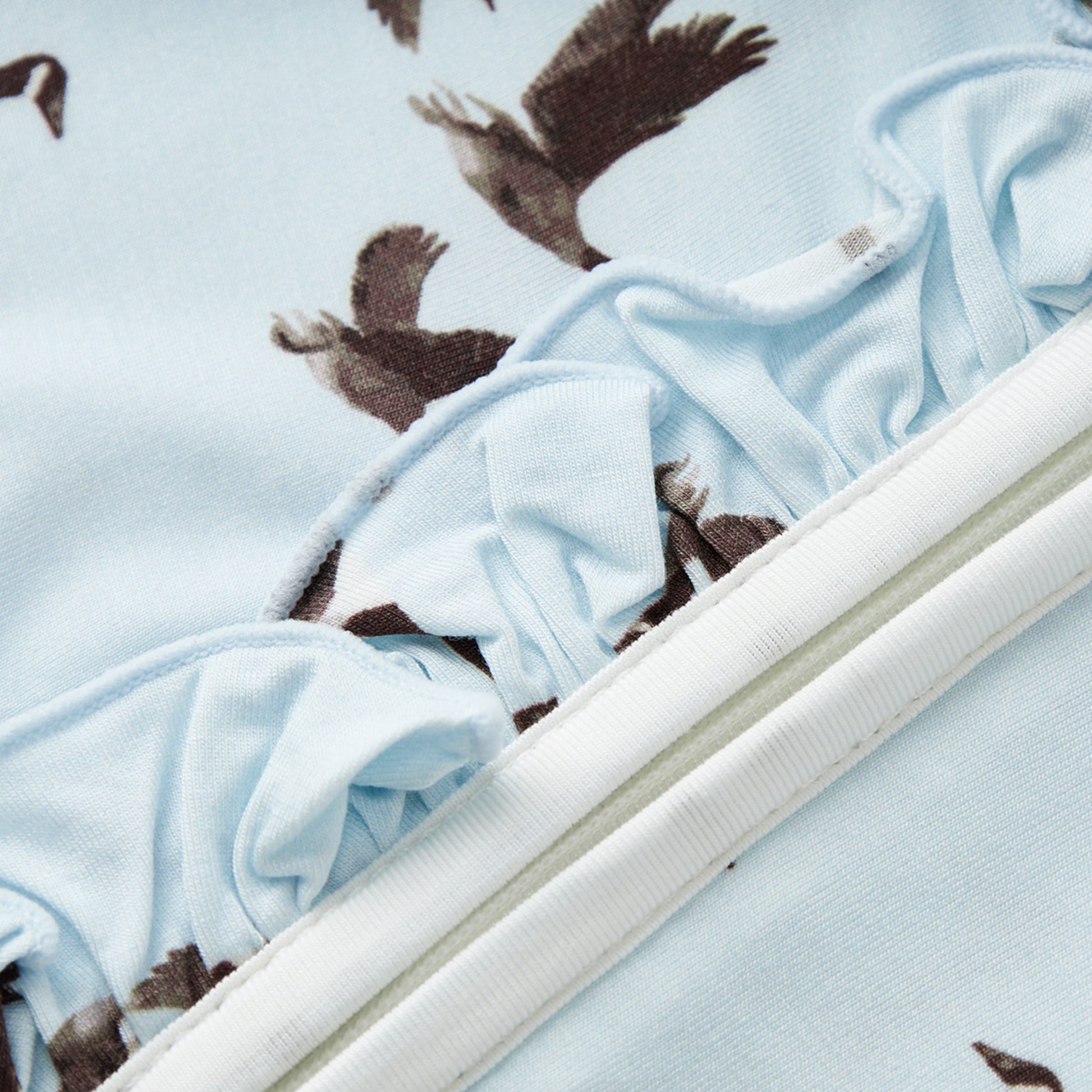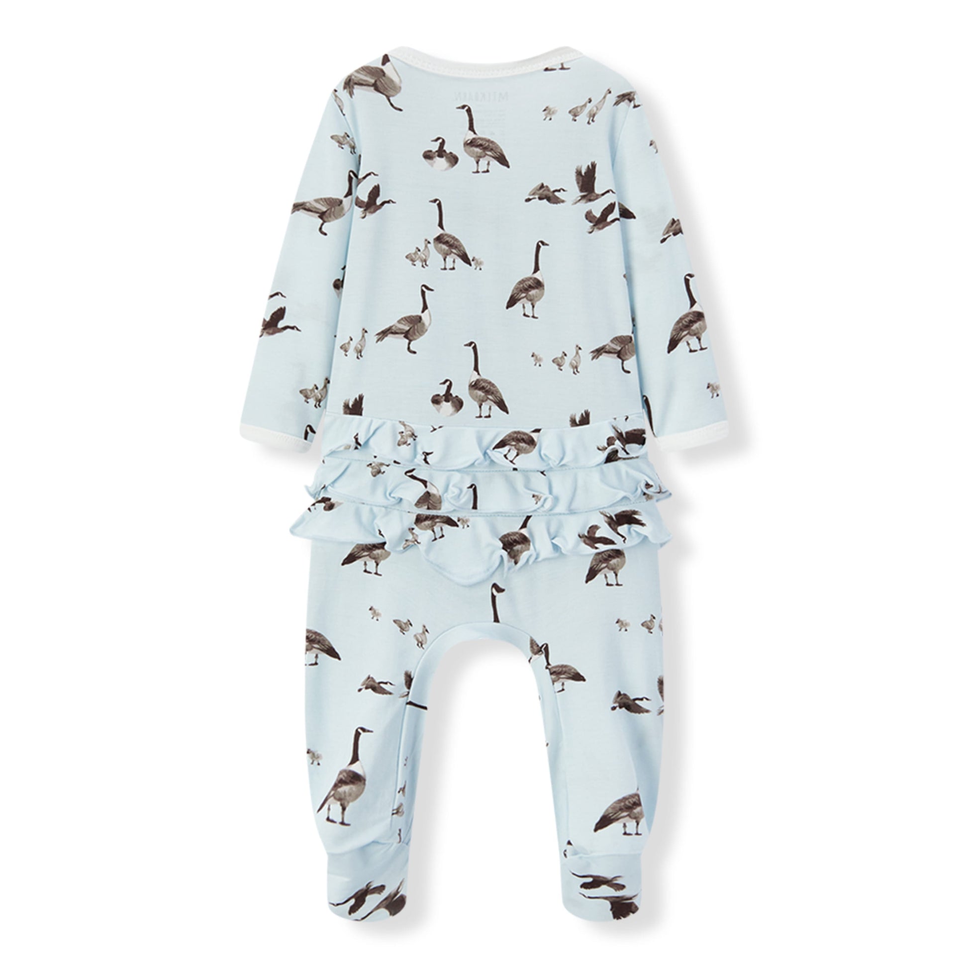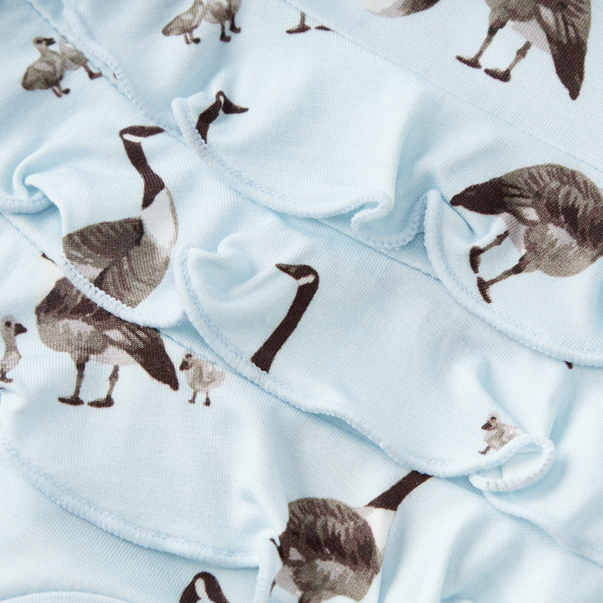 I zip, you zip, we all zip! Whether zipping from the top-down, bottom-up, or somewhere in between, we made changing and dressing just a wee bit easier with our baby Goose Luxe Stretch Ruffle Zipper Footed Romper. A subtle, ruffle-edged asymmetrical seam and three cascading, full-width rear ruffles add a little extra fun. With dual, two-way zippers and a closed-foot detail, this timeless classic blends design with functionality while wrapping your little ones in gentle comfort.