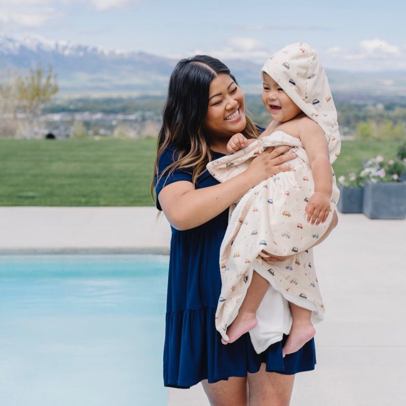 Saranoni’s hooded towels make the end of bath time, pool time or water play softer than ever before! Made with ultra absorbent luxury minky and terrycloth to provide quick-drying comfort and the softest touch for sensitive skin. To wash, simply wash on cold without softeners or pods and hang to dry!