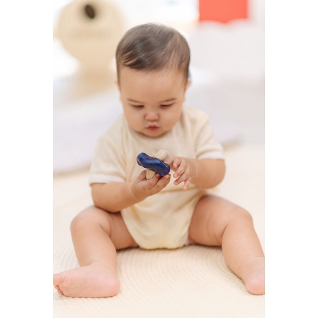 - Encourages grasping and purposeful movement through smooth, natural textures.