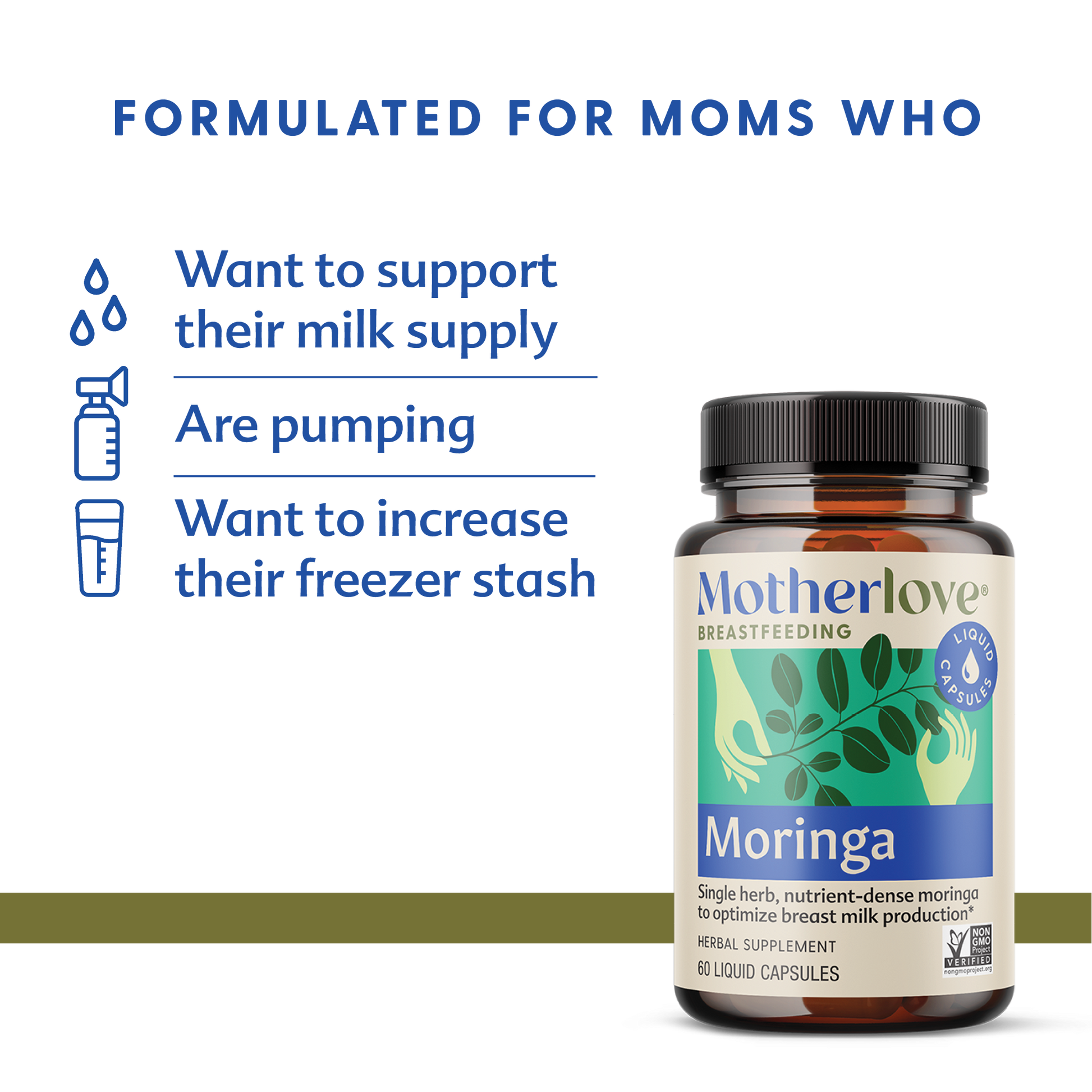 Moringa is formulated for moms who want to support their milk supply*, are pumping, or want to increase their freezer stash*.