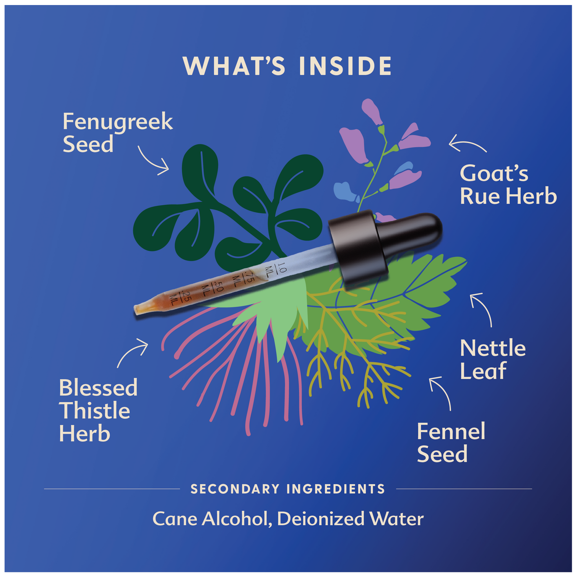 More Milk Special Blend is a concentrated liquid extract that gives you breastfeeding support* in a convenient liquid capsule. Because goat's rue may help the development of mammary tissue*, please allow two weeks of consistent use to see results.