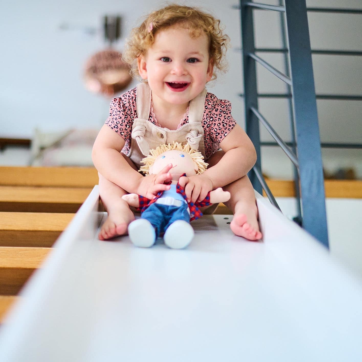 - A great keepsake toddler doll and can be enjoyed with other HABA 12-13. 75" outfits and accessories (sold separately). Comes packaged in an open display box.