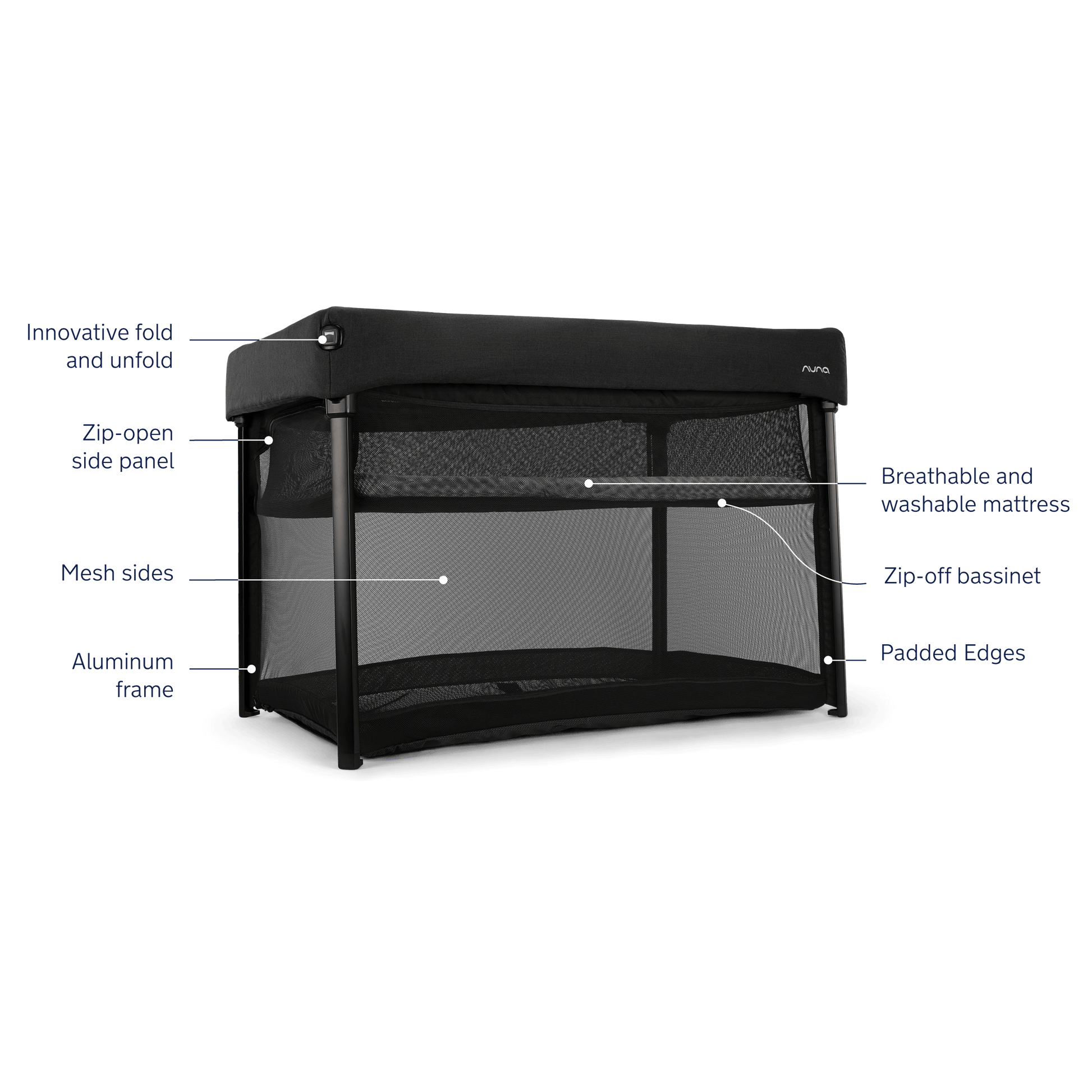 - Breathable mattress insert is supportive and provides a flat surface with optimal airflow