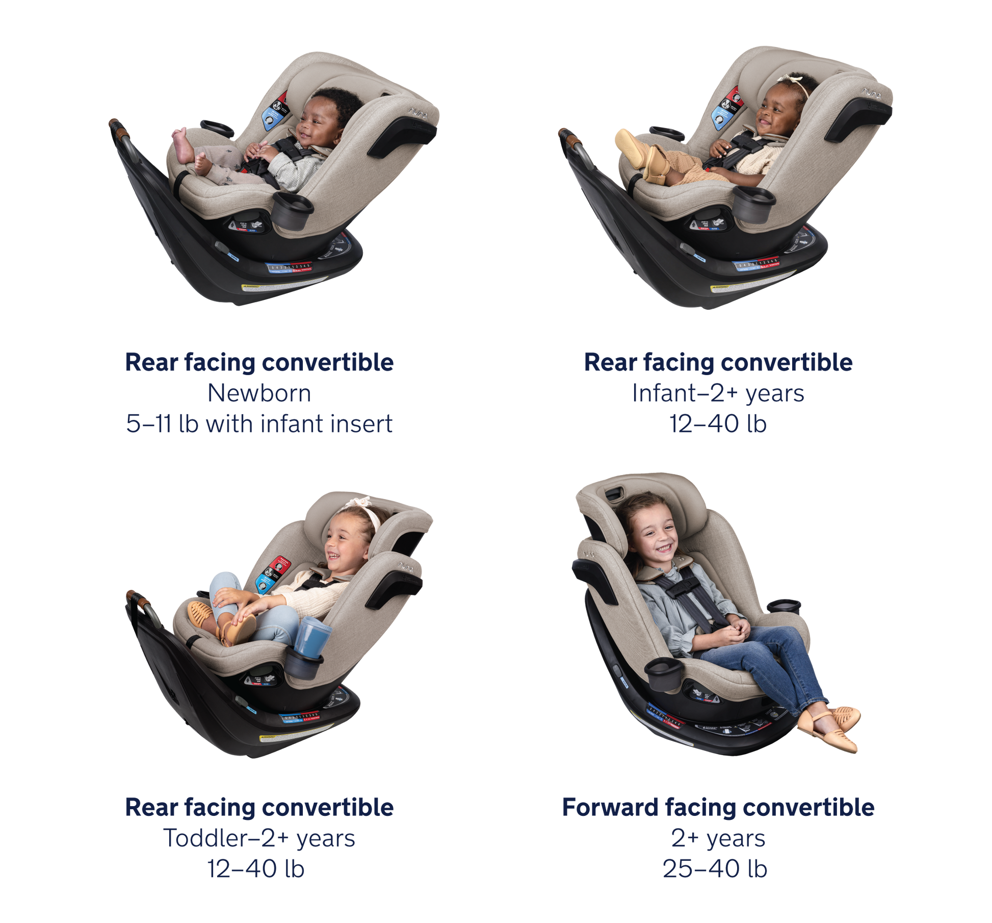 The Nuna REVV rotating convertible car seat is ready to revolutionize your travel experience. One simple install then rotate the seat 360° effortlessly for a stress-free easy-in, easy-out between adventures. The REVV converts from a rear to forward-facing car seat as your little one grows from newborn up to 40 pounds. The sleek lines provide a stylish look for you, while the luxurious fabrics and ventilation provide a comfortable ride for them. REVV provides security with Steel Strength Technology, side impact protection, and a ten-position, bubble-free recline for snug and secure comfort. REVV is the stress-free rotating seat of your dreams.