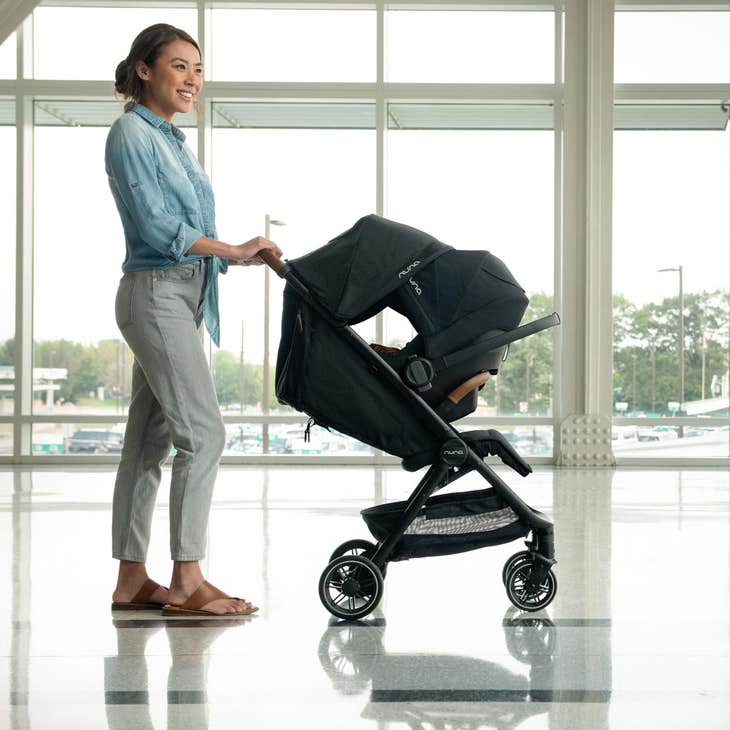 The Nuna TRVL stroller is ultra-lightweight at just 13.6 lbs. (without canopy or arm bar) so it’s easy to carry with the arm bar when folded or go hands-free and store away during travel with the carry bag that’s included. It pairs perfectly with all PIPA series car seats, creating a sleek-looking travel system with just a click – no adapters needed. City living or jet-setting parents will love the luxe materials and innovative conveniences of this compact and lightweight travel stroller for miles to go.