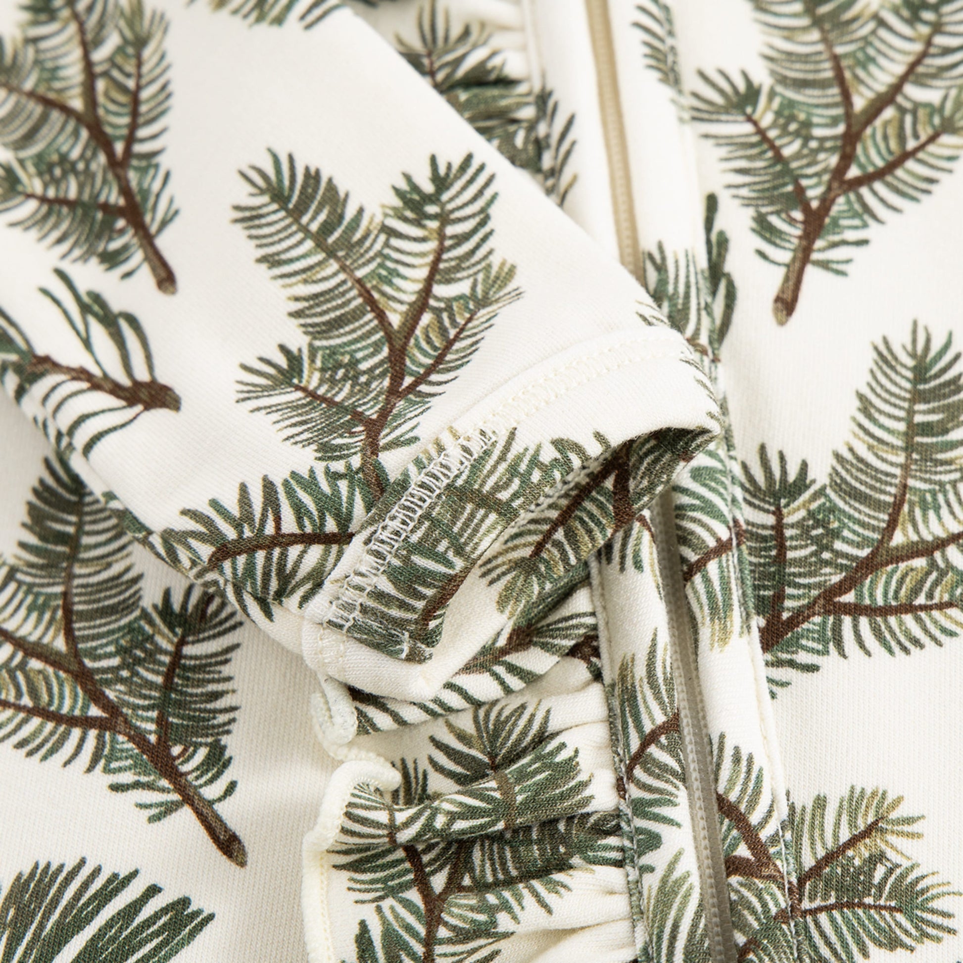 I zip, you zip, we all zip! Whether zipping from the top-down, bottom-up, or somewhere in between, we made changing and dressing just a wee bit easier with our baby Pine Brushed Ruffle Zipper Footed Romper. A subtle, ruffle-edged asymmetrical seam and three cascading, full-width rear ruffles add a little extra fun. With dual, two-way zippers and a closed-foot detail, this timeless classic blends design with functionality while wrapping your little ones in gentle comfort.