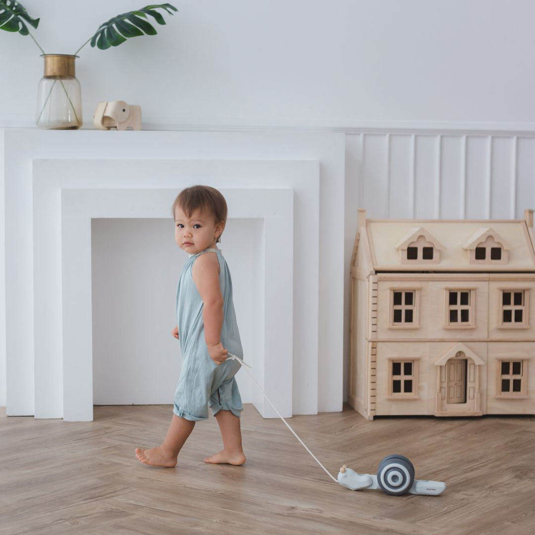 Let a sleek and classic pull-toy be your companion! This little friend helps toddlers develop gross motor and coordination skills, and also serves as home decor - fi tting in harmoniously with any room.