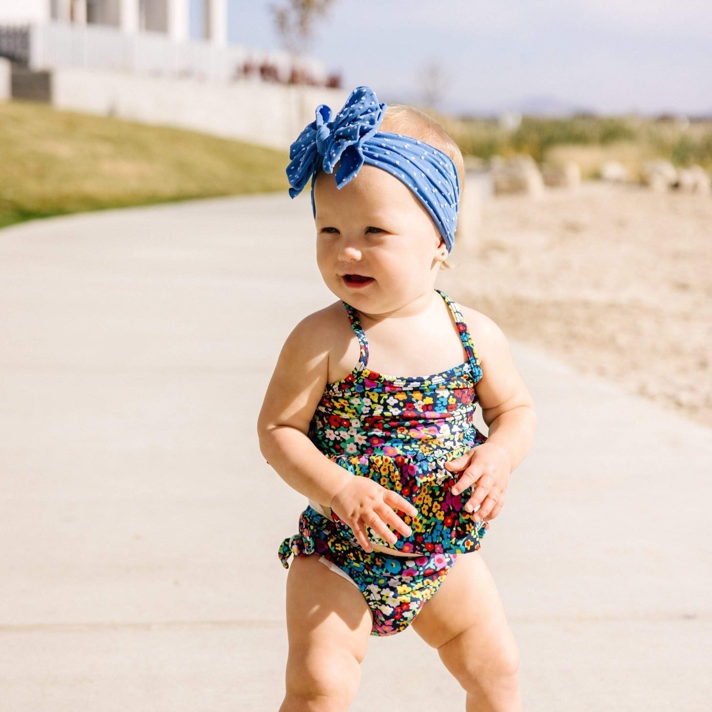 Baby Bling® Shabby Dot FAB® soft nylon/spandex with textured dot pattern wide headband with bow