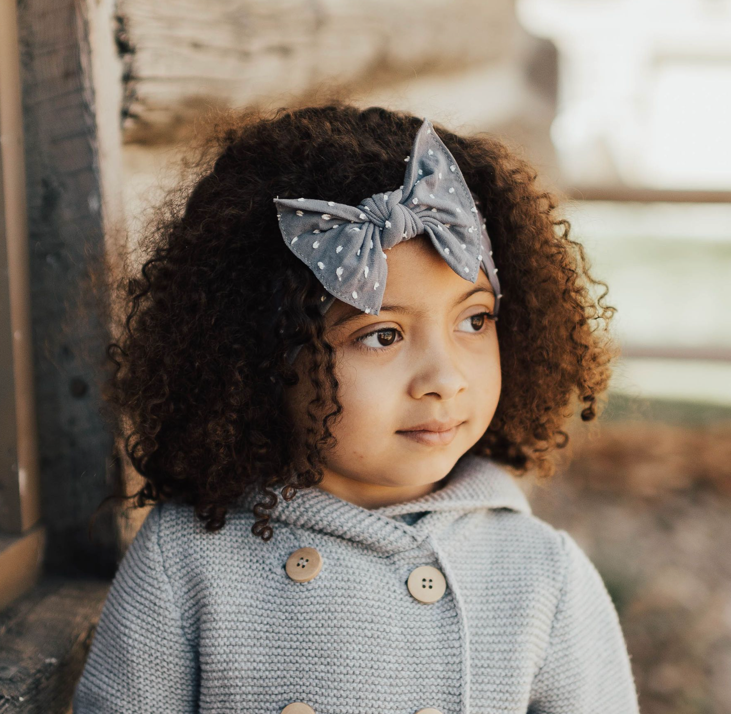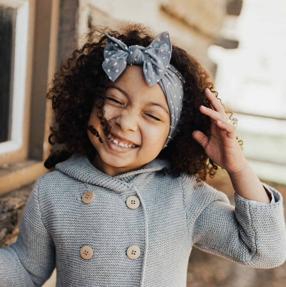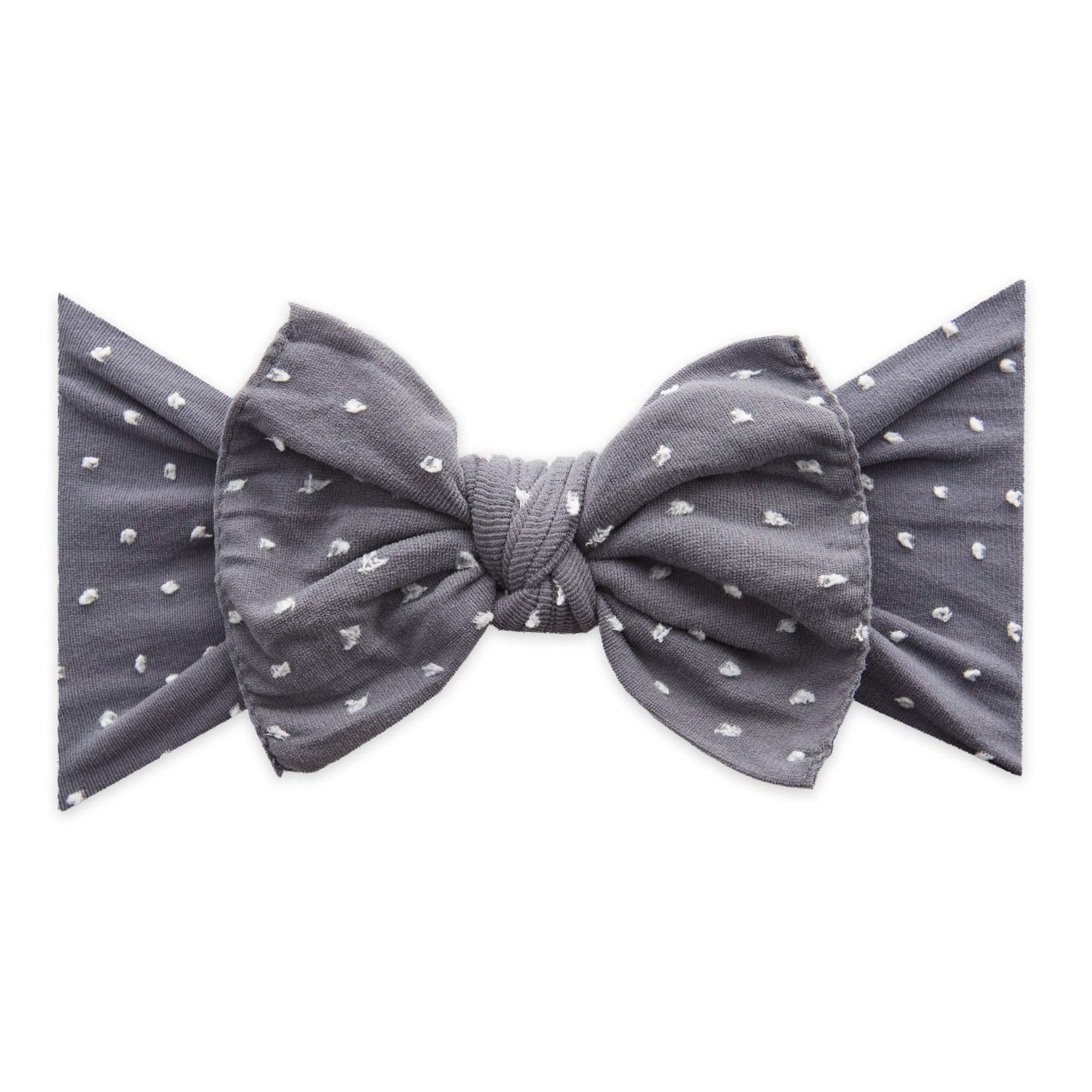 Shabby is the new chic with our woven dot pattern! The raised dots add texture and detail to your favorite Knot style headband! This headband is one size fits most and the size cannot be adjusted. The headband is sewn at a 6.5" diameter (13" circumference), keep in mind that measurement is before it stretches. We feel this is the perfect size for our soft nylon to fit a newborn and stretch comfortably as she grows into childhood. The bow measures approximately 4" across. The exposed stitching detail and a raw edge is signature Baby Bling! This style is sewn in two pieces and can be taken apart for hand washing or to mix-and-match. The Patterned Shabby Knot material is a soft nylon/polyester/spandex blend, produced to our specifications, in the USA . Each headband is hand sewn and tied by women in our local community. Due to the nature of small-batch production color and sizing can vary slightly.