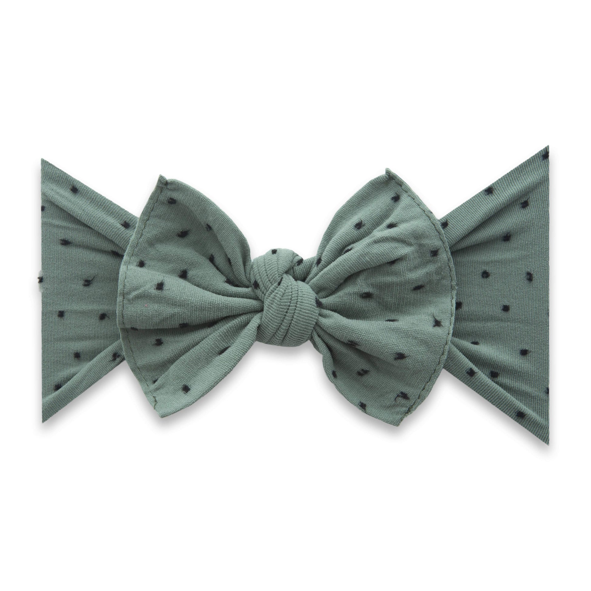 Shabby is the new chic with our woven dot pattern! The raised dots add texture and detail to your favorite Knot style headband! This headband is one size fits most and the size cannot be adjusted. The headband is sewn at a 6.5" diameter (13" circumference), keep in mind that measurement is before it stretches. We feel this is the perfect size for our soft nylon to fit a newborn and stretch comfortably as she grows into childhood. The bow measures approximately 4" across. The exposed stitching detail and a raw edge is signature Baby Bling! This style is sewn in two pieces and can be taken apart for hand washing or to mix-and-match. The Patterned Shabby Knot material is a soft nylon/polyester/spandex blend, produced to our specifications, in the USA . Each headband is hand sewn and tied by women in our local community. Due to the nature of small-batch production color and sizing can vary slightly.