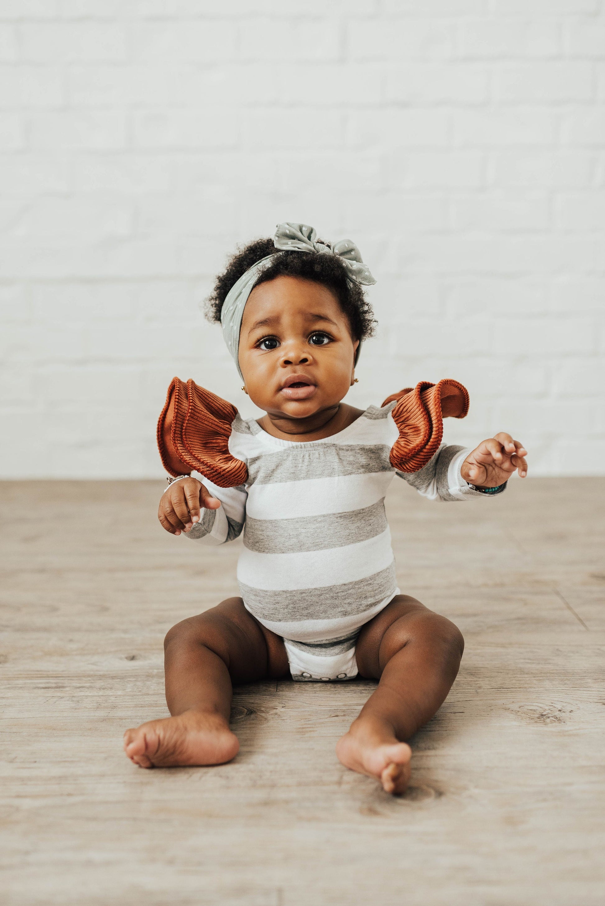 Shabby is the new chic with our woven dot pattern! The raised dots add texture and detail to your favorite Knot style headband! This headband is one size fits most and the size cannot be adjusted. The headband is sewn at a 6.5" diameter (13" circumference), keep in mind that measurement is before it stretches. We feel this is the perfect size for our soft nylon to fit a newborn and stretch comfortably as she grows into childhood. The bow measures approximately 4" across. The exposed stitching detail and a raw edge is signature Baby Bling! This style is sewn in two pieces and can be taken apart for hand washing or to mix-and-match. The Patterned Shabby Knot material is a soft nylon/polyester/spandex blend, produced to our specifications, in the USA . Each headband is hand sewn and tied by women in our local community. Due to the nature of small-batch production color and sizing can vary slightly.