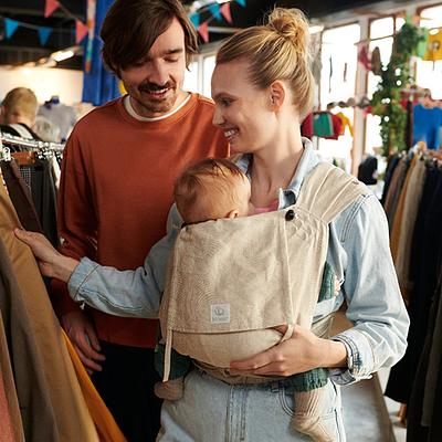 - Wide, spreadable shoulder straps made of 2-layer babywearing fabric