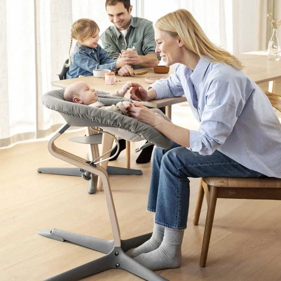 The Stokke® Nomi® Newborn Set is designed to provide your baby with a soft and cozy spot at the center of the family. The raised height is ideal for "talking", playing and maintaining contact with your baby. The Stokke® Nomi® chair with the attached Newborn Set is easy to move around the house. Wherever you need an extra pair of hands - it can be seamlessly adjusted between an almost horizontal and more upright positions to meet your baby's changing needs. It offers a gentle bounce responding to your baby's natural movement while your baby's head remains stable.