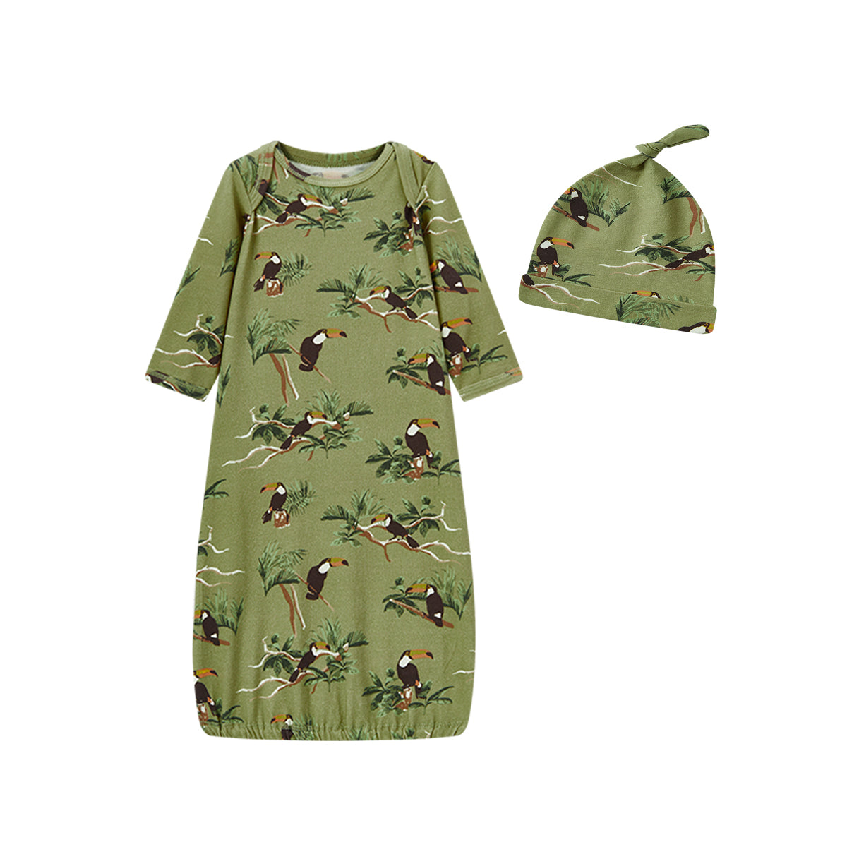 Toucan Cotton Stretch Newborn Gown & Hat Set
