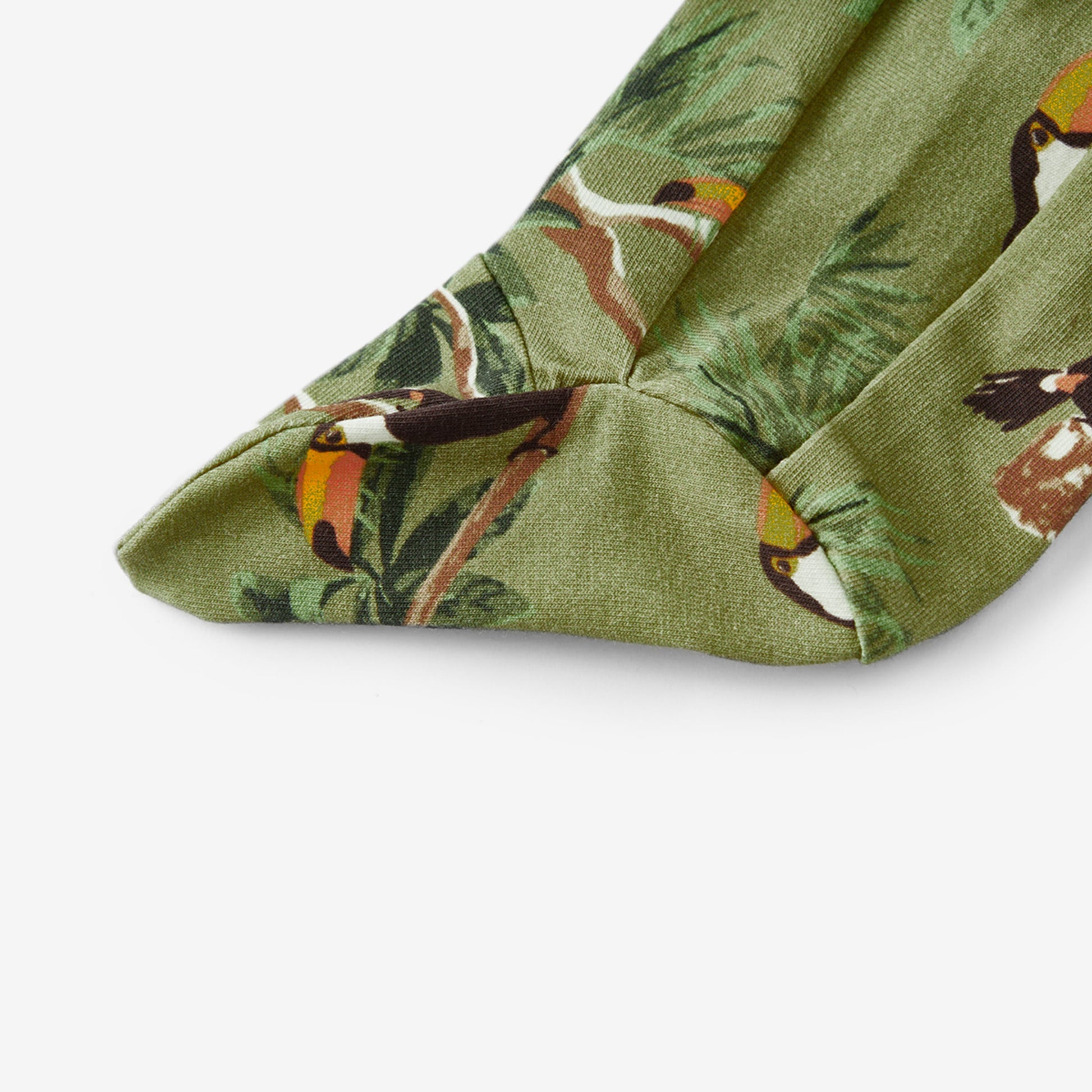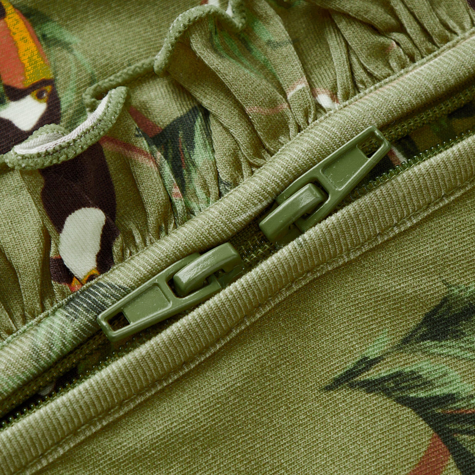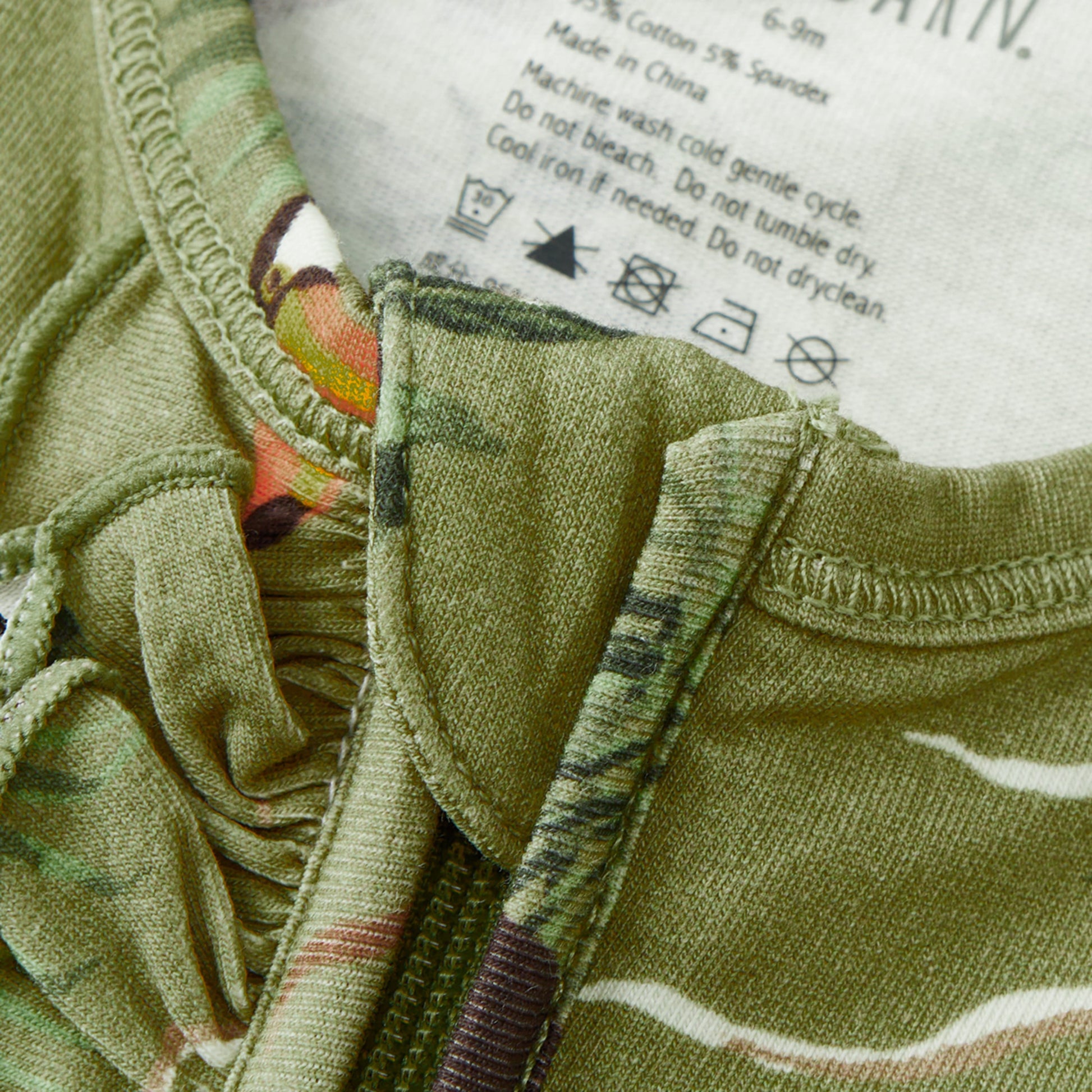 I zip, you zip, we all zip! Whether zipping from the top-down, bottom-up, or somewhere in between, we made changing and dressing just a wee bit easier with our baby Toucan Cotton Stretch Ruffle Zipper Footed Romper. A subtle, ruffle-edged asymmetrical seam and three cascading, full-width rear ruffles add a little extra fun. With dual, two-way zippers and a closed-foot detail, this timeless classic blends design with functionality while wrapping your little ones in gentle comfort.