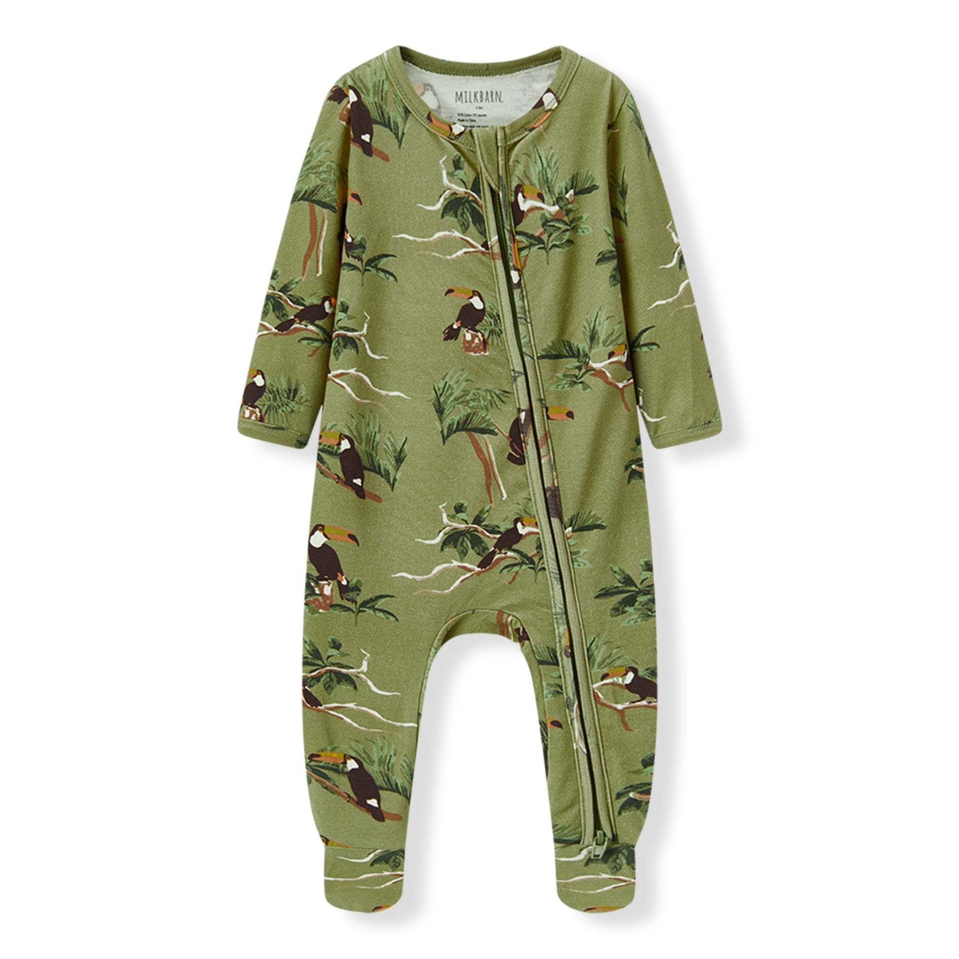 Toucan Cotton Stretch Zipper Footed Romper