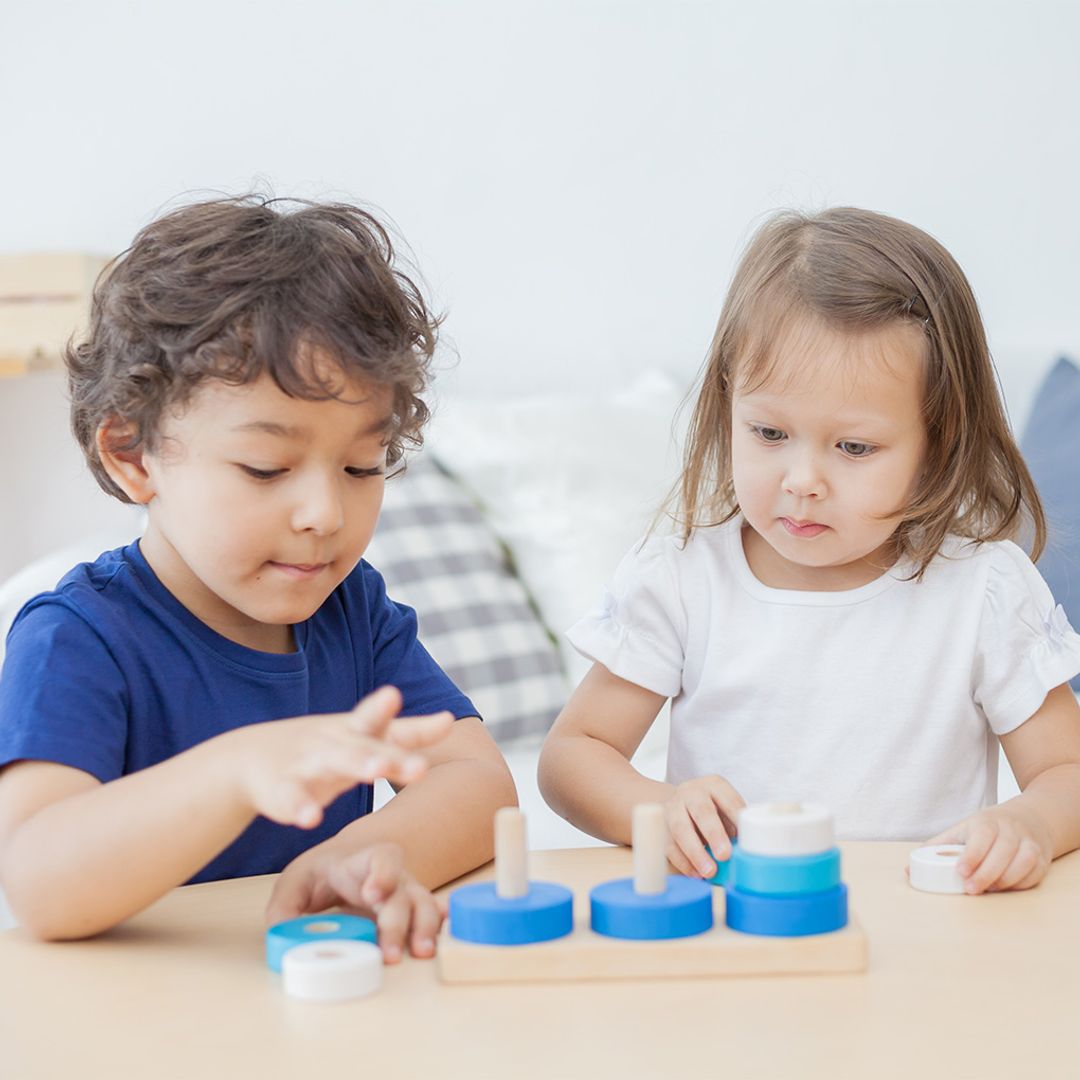 Trio-Stacking will engage children into the enjoyment of stack rings in different ways to create various patterns. They will also learn ordering, grouping colors and size relationship.
