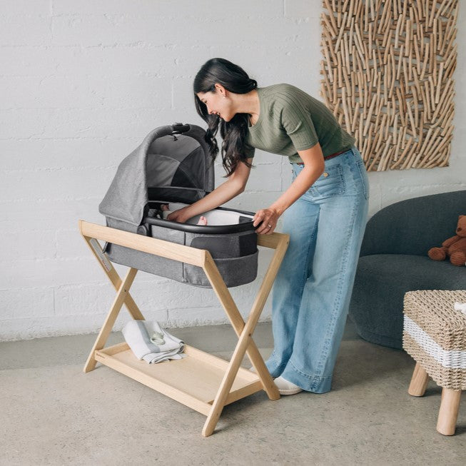 Take your Bassinet from boulevard to bedroom by snapping it into the secure and elevated Bassinet Stand. Bassinet snaps into the stand, just like the VISTA or CRUZ attachments.
