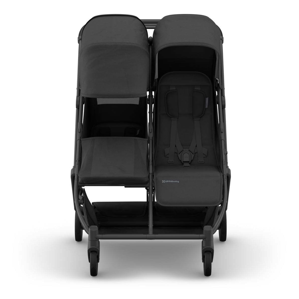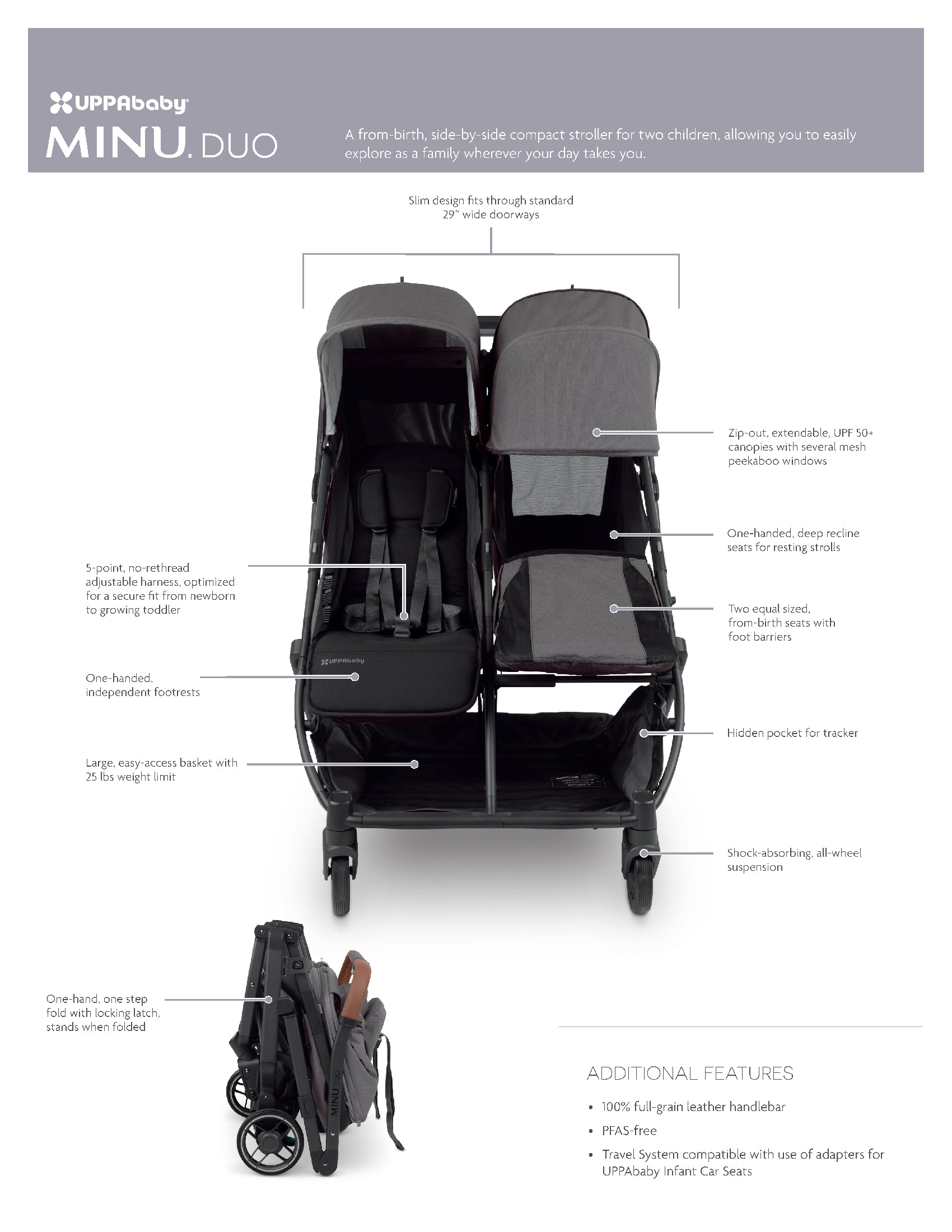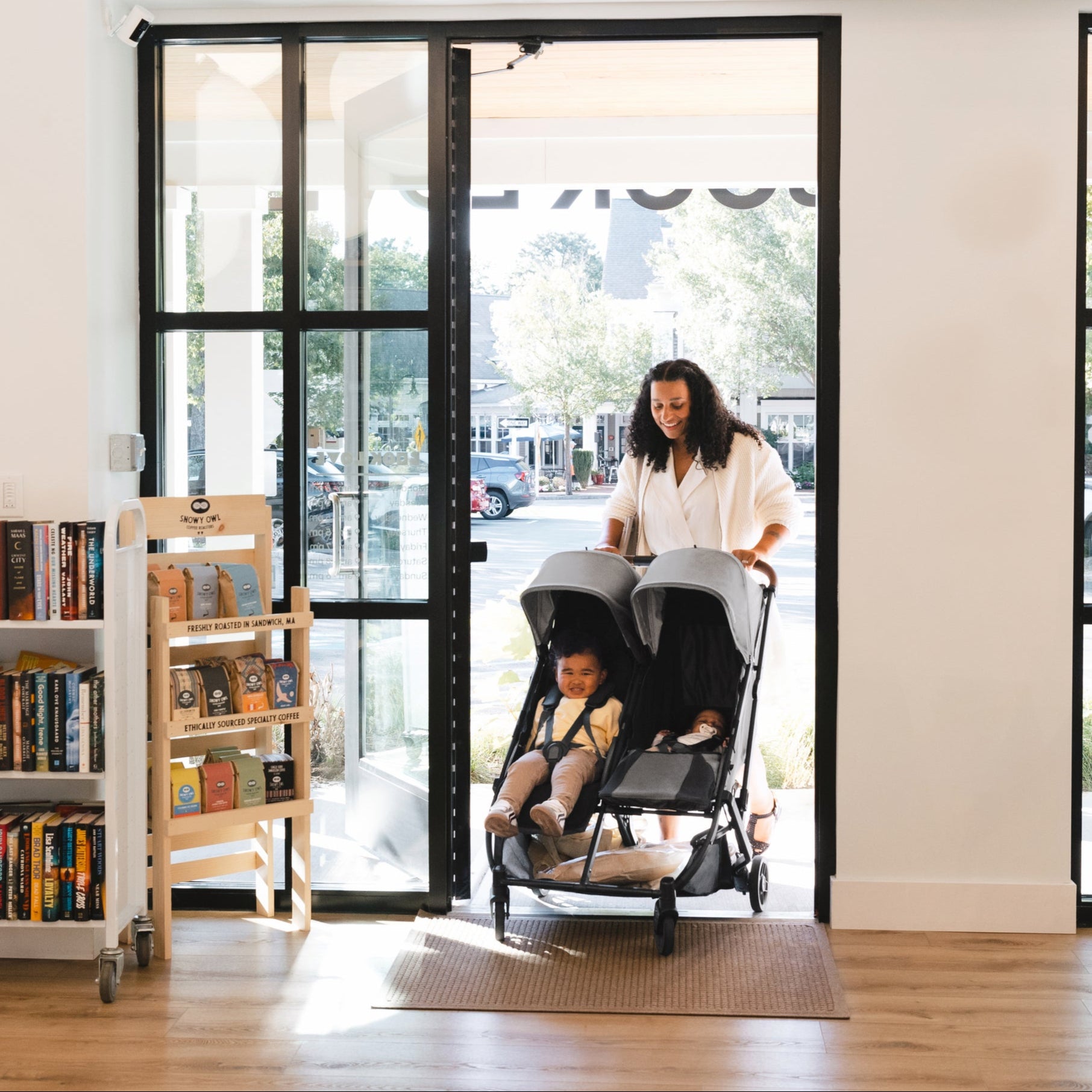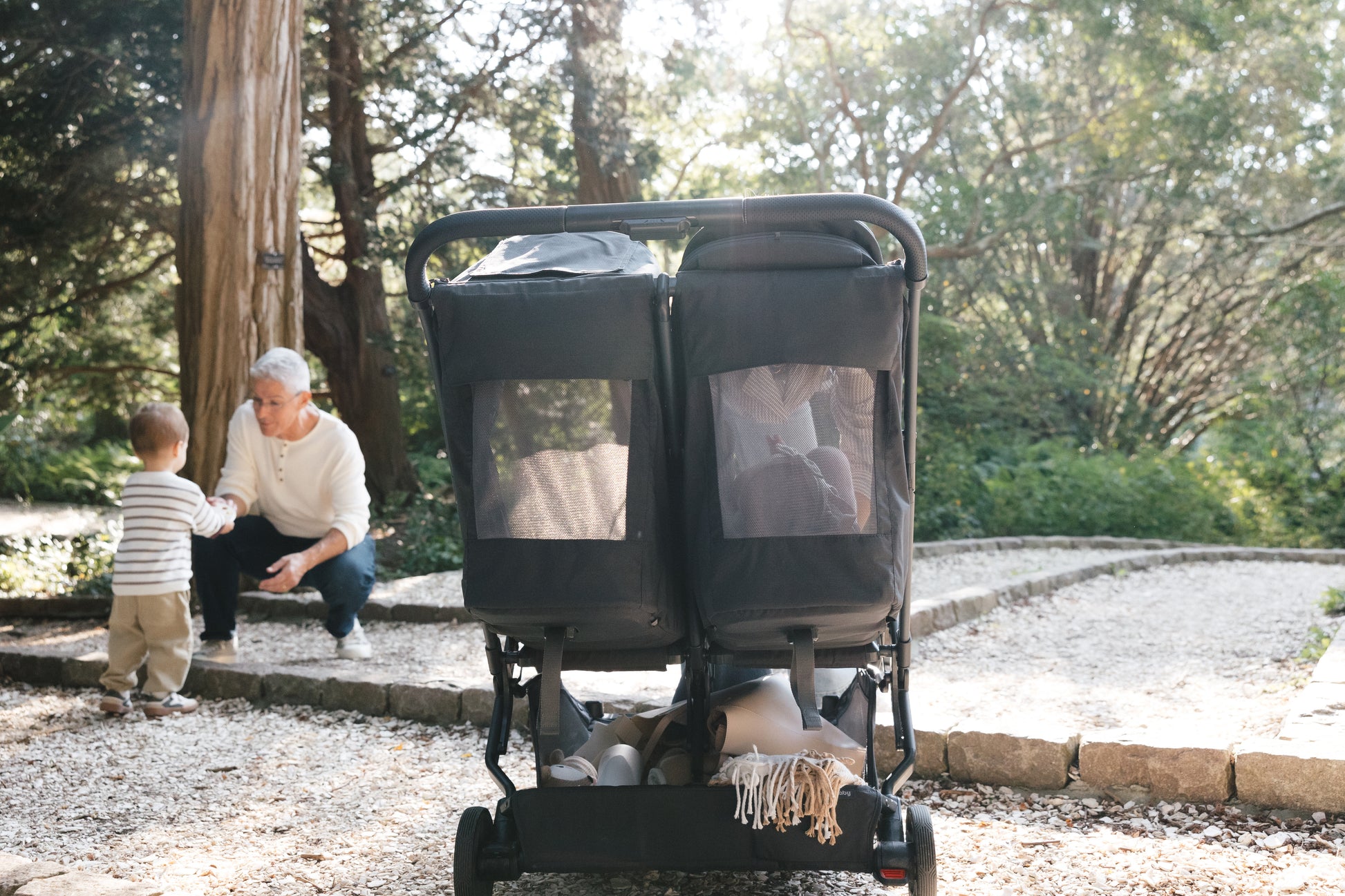 A from-birth, side-by-side compact stroller for two children, allowing you to easily