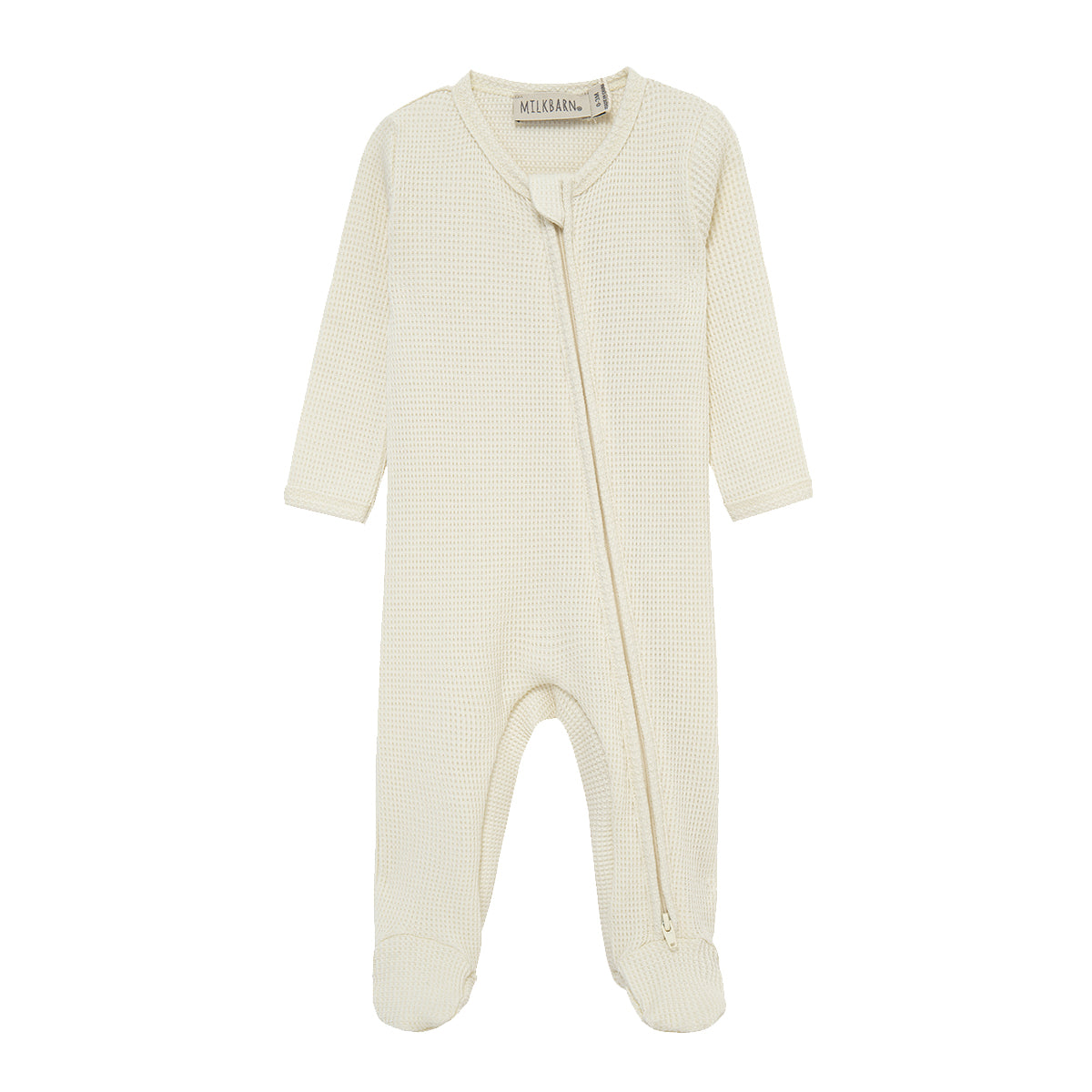 I zip, you zip, we all zip! Whether zipping from the top-down, bottom-up or somewhere in between, we made changing and dressing just a wee bit easier with our newborn and baby Vanilla Waffle Zipper Footed Romper. With dual, two-way zippers, a closed foot detail, and an asymmetrical seam, this timeless classic blends design with functionality while wrapping your little ones in gentle comfort.