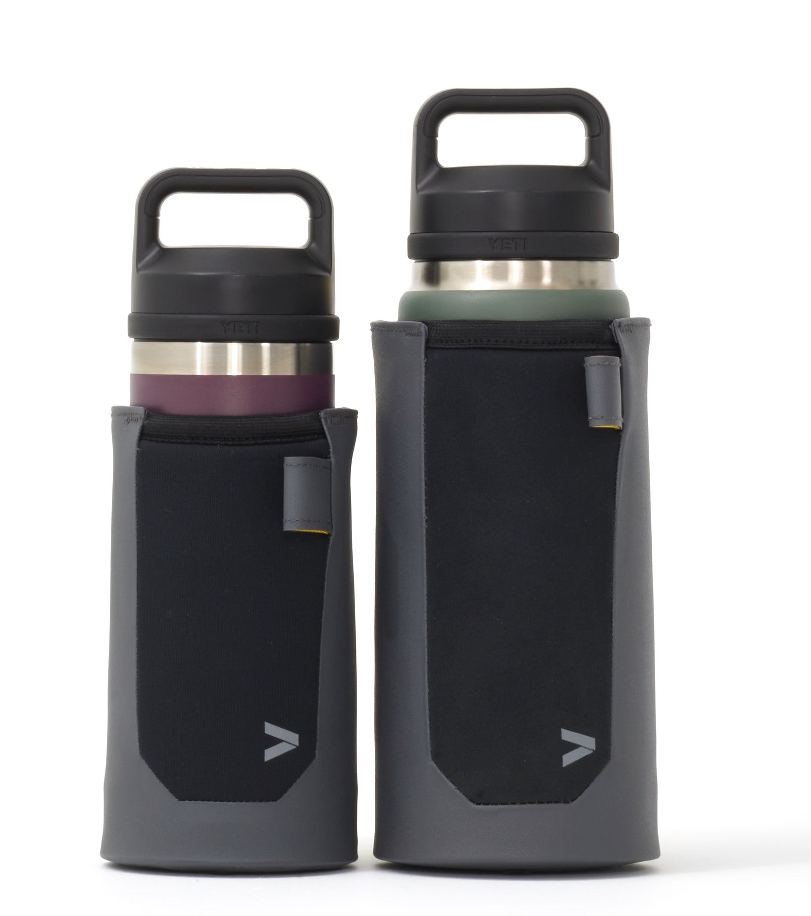 The Catch All is ideal for bottle sizes up to a Yeti 18oz Rambler and similar, and the Catch All XL is ideal for bottle sizes up to a Yeti 26oz Rambler and similar.