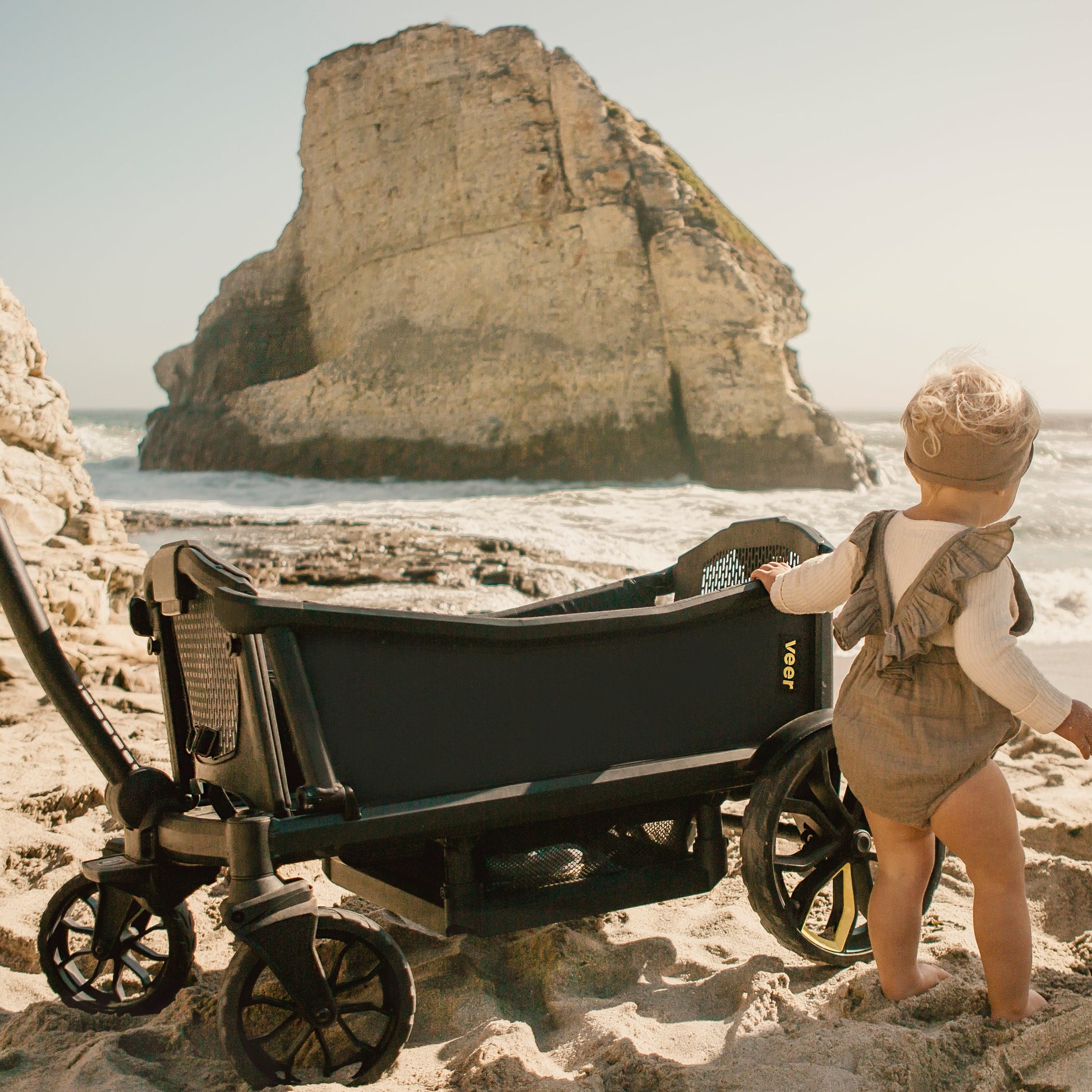 What happens when you combine a premium stroller and a rugged wagon? You get the Veer Cruiser, the world's first All-Terrain Stroller-Wagon Crossover that blends all of the feel, functionality and safety of modern premium strollers with the rugged fun of a wagon, with seating for 2. Negotiate hills, blow through boundaries and reimagine family adventures.