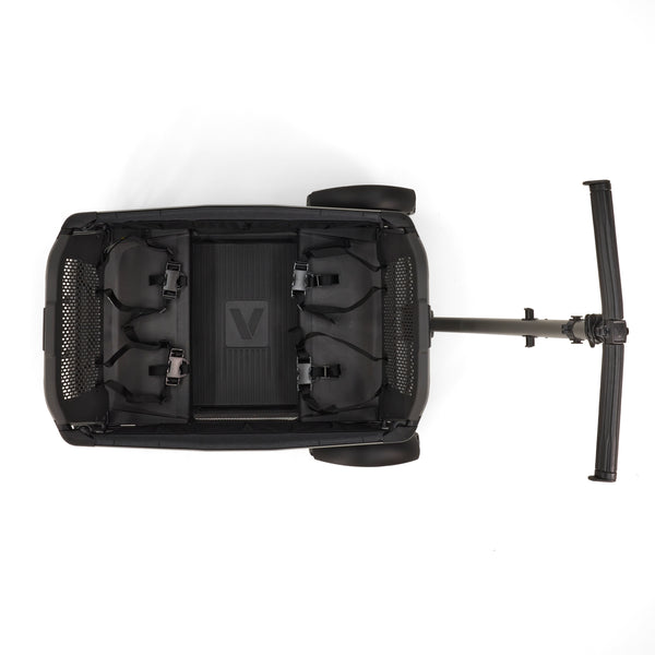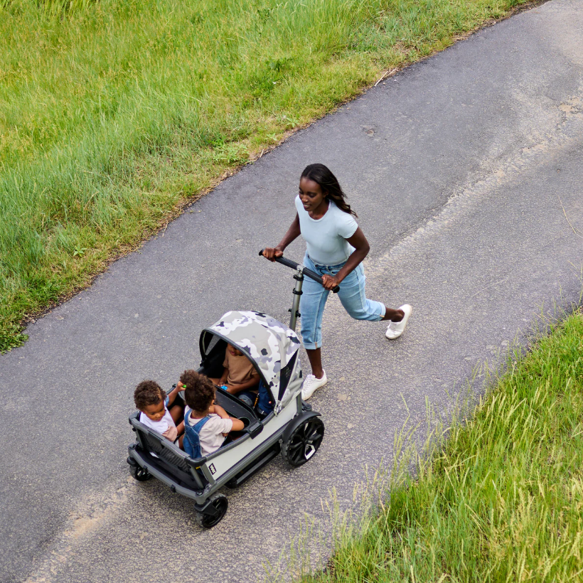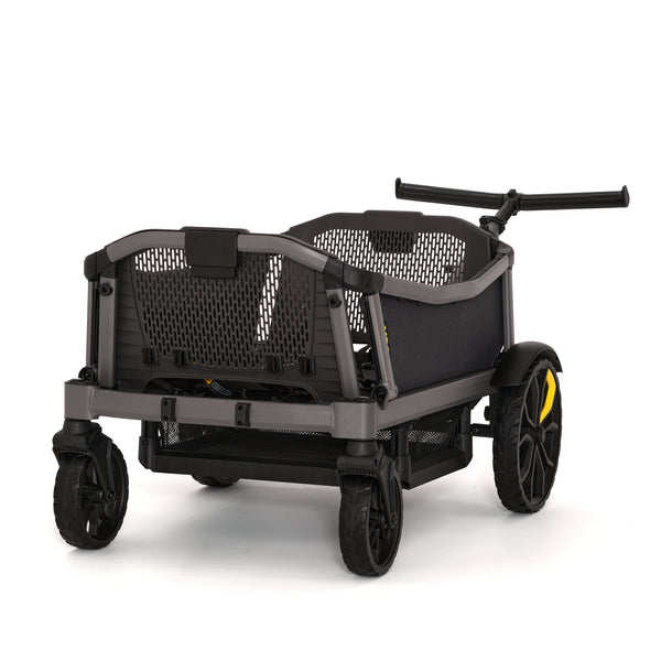 Cruiser City XL gives your family the fun and all-terrain versatility of a Cruiser but offers push steering and ample kickspace of a traditional stroller. Cruiser City XL is perfect for families that love to push on sidewalks, paths and through local attractions with seating for 4. Cruiser City XL features swivel wheels furthest from the handle, which enable it to be steered like a traditional stroller when pushing on smooth terrain. But don't worry, the handlebar can also drop into wagon mode for pulling over uneven terrain.