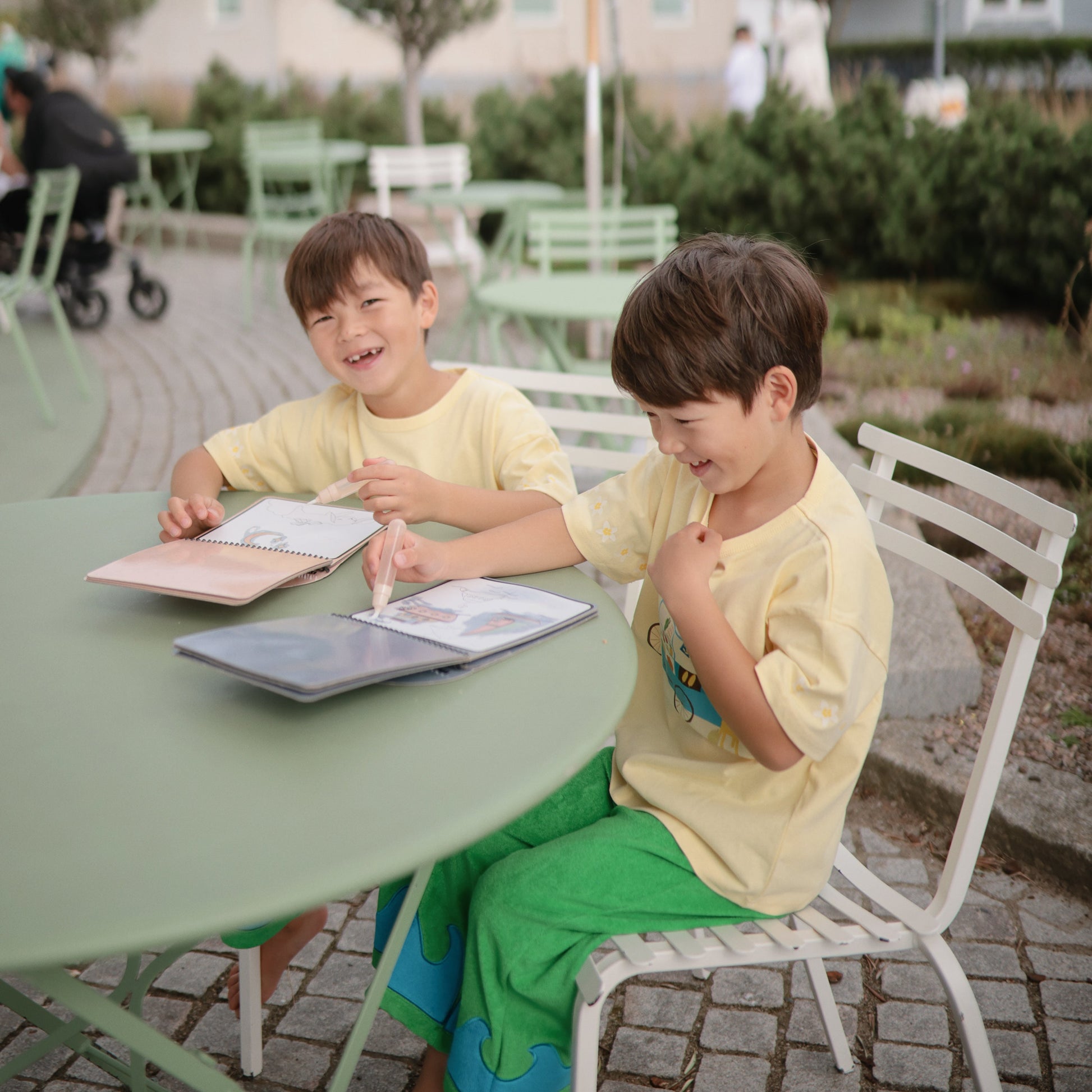 Little imaginations will soar far and wide with the Mushie reusable water color pad. Featuring four pages of colorful planes, trains and automobiles that come to life with just water. A refillable paintbrush allows children to easily “paint” the pages, revealing vibrant scenes and hidden surprises. Once dry, the pages turn back to white, ready to be used again and again. Crafted from FSC Certified paper, this is a sustainable and mess-free way to inspire creativity. Makes a perfect travel companion for little artists on the go.