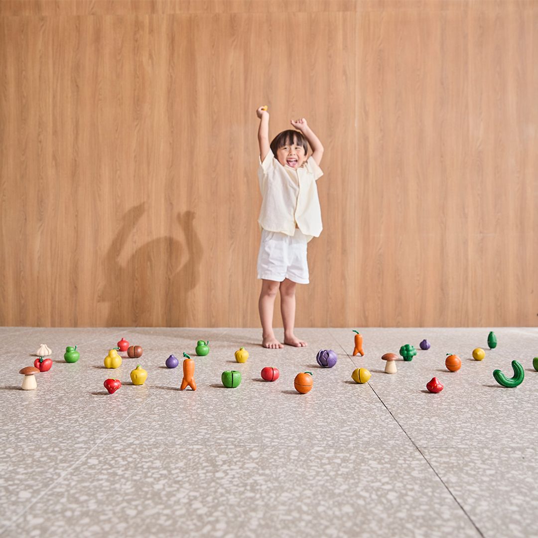 - This set includes a pretend play knife and 5 sliceable fruits and vegetables.