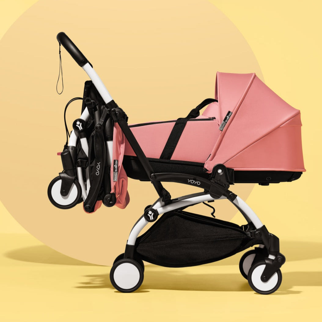 YOYO³ accompanies your child from birth to toddler. Just choose the fabric version that you want at birth: newborn pack or bassinet. Then change it as your child grows: 6+ color pack. YOYO³ folds and unfolds in a moment. It is so compact that it can be stored in the smallest space at home, takes up very little room in the trunk of a car and can even be carried on the plane* in the newborn pack and 6+ versions.